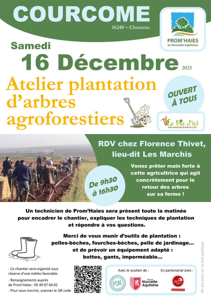 Toutes les infos (inscriptions, matériel à apporter,…) : https://www.promhaies.net/news/samedi-16-decembre-venez-planter-des-arbres-a-courcome-16,18736/?utm_source=Informations+de+Terre+de+Liens&utm_campaign=ed8b5167d1-EMAIL_CAMPAIGN_2020_01_10_11_11_COPY_01&utm_medium=email&utm_term=0_7aacaabdd1-ed8b5167d1-407177409