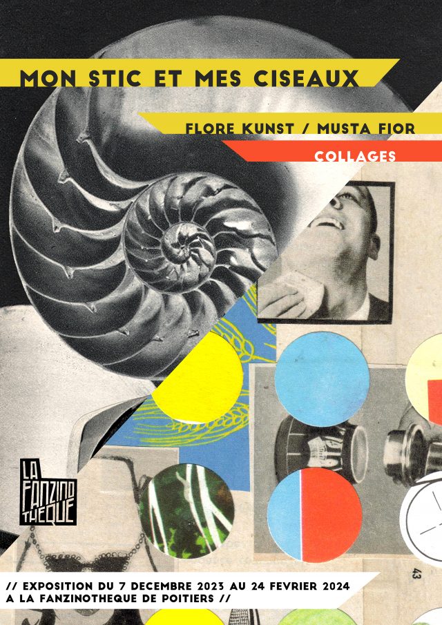 Vernissage à La Fanzinothèque de Poitiers le jeudi 7 décembre à 19h, suivi du concert des Designers proposé par le TAP et Jazz à Poitiers (concert complet) de l’exposition « Mon stic et mes ciseaux ».