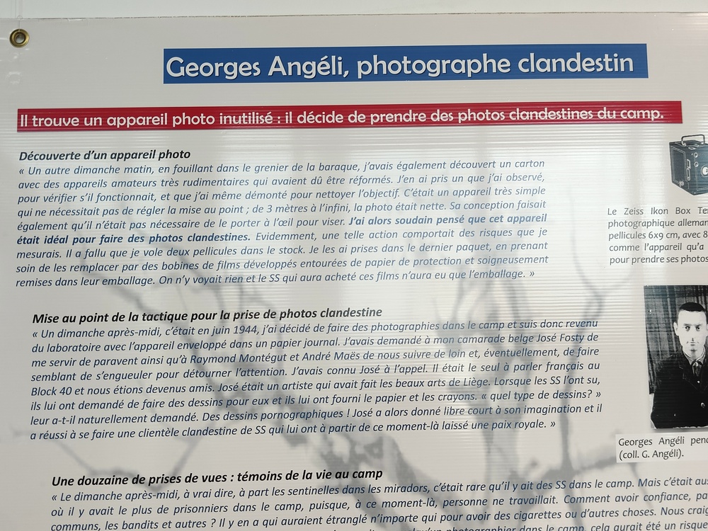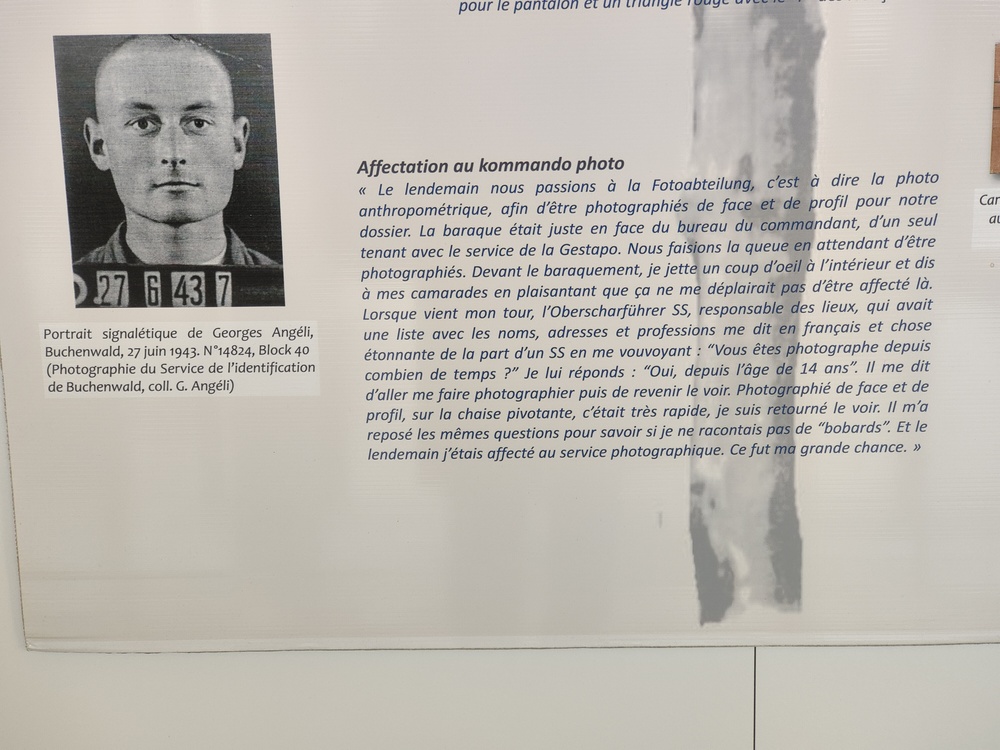 Georges Angéli a 23 ans lorsqu’il est déporté en 1943 dans le camp de concentration nazi de Buchenwald. Photographe de formation, il est sélectionné pour travailler au service photographique du camp. Au péril de sa vie, il va développer clandestinement des doubles des clichés pris par les nazis du camp et réaliser lui-même un reportage photographique clandestin dans le camp. Les photographies sauvées par Georges Angéli constituent un témoignage unique et furent diffusées dans le monde entier.