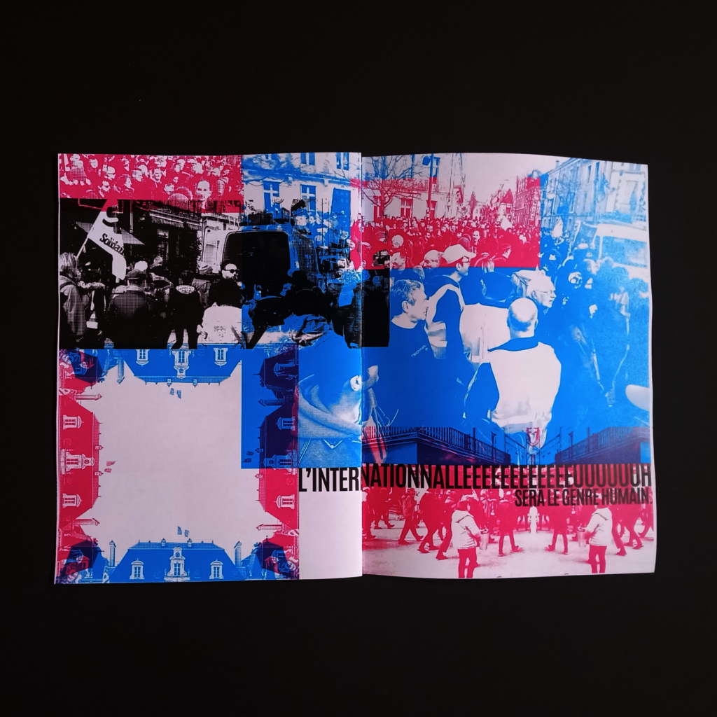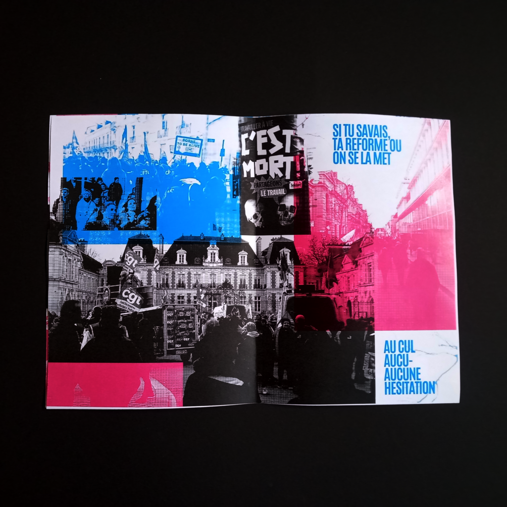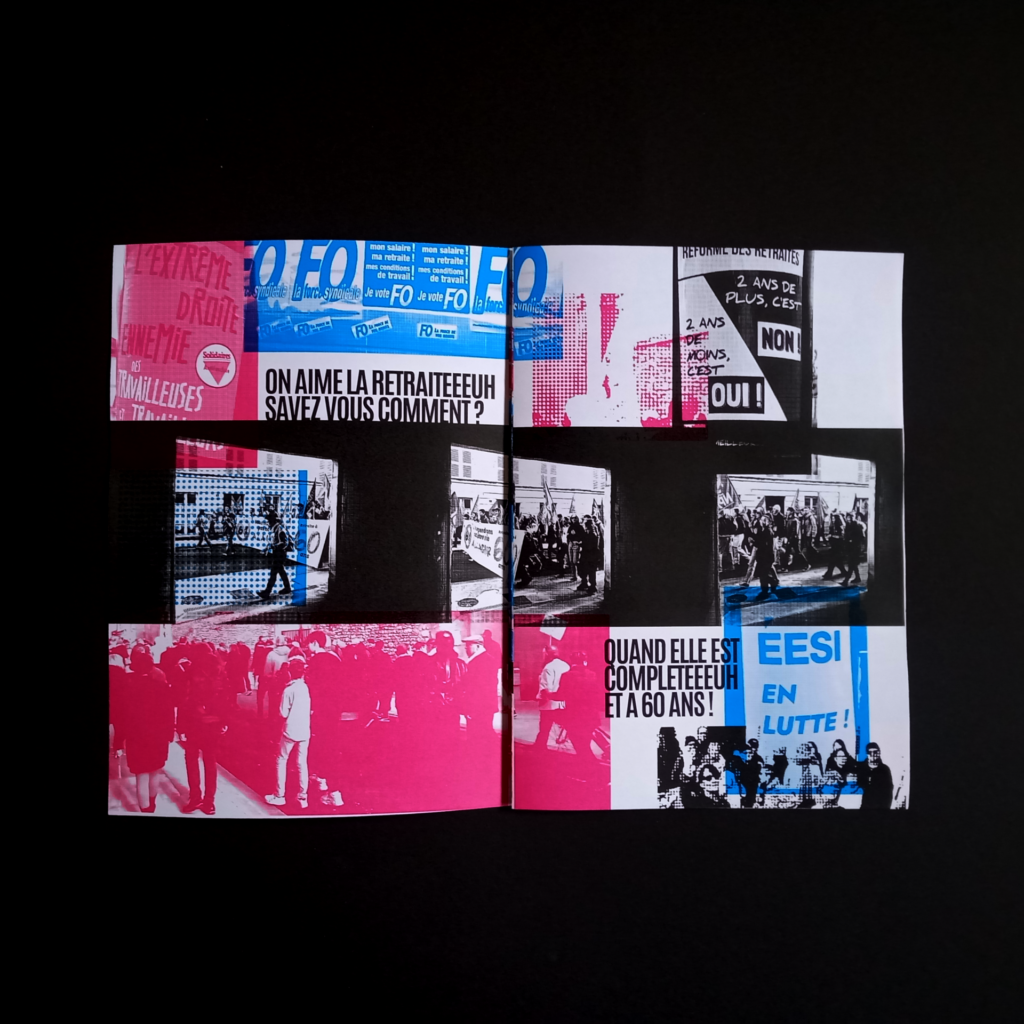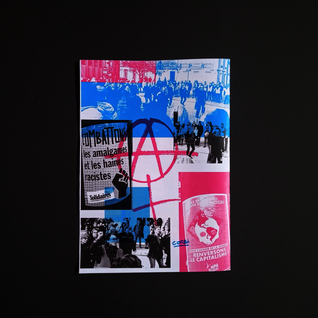 Ce fanzine est un saturation des pages avec des images, des couleurs, des trames et un peu de texte.