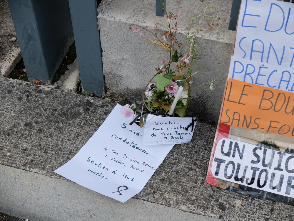 Pas de prise de parole à ce rassemblement syndicales mais une minute de silence lourde de colère. Leur mépris, nos vies, nos morts.