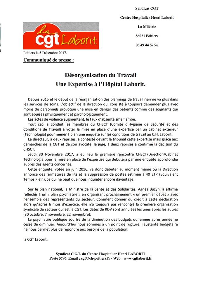 Hôpital Laborit de Poitiers. Enquête du CHSCT