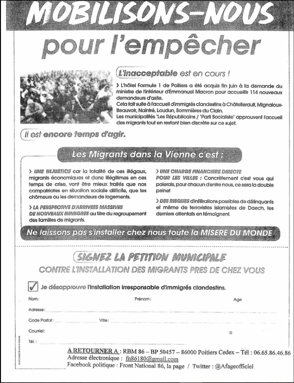 Un tract distribué dans les boîtes aux lettres de Poitiers