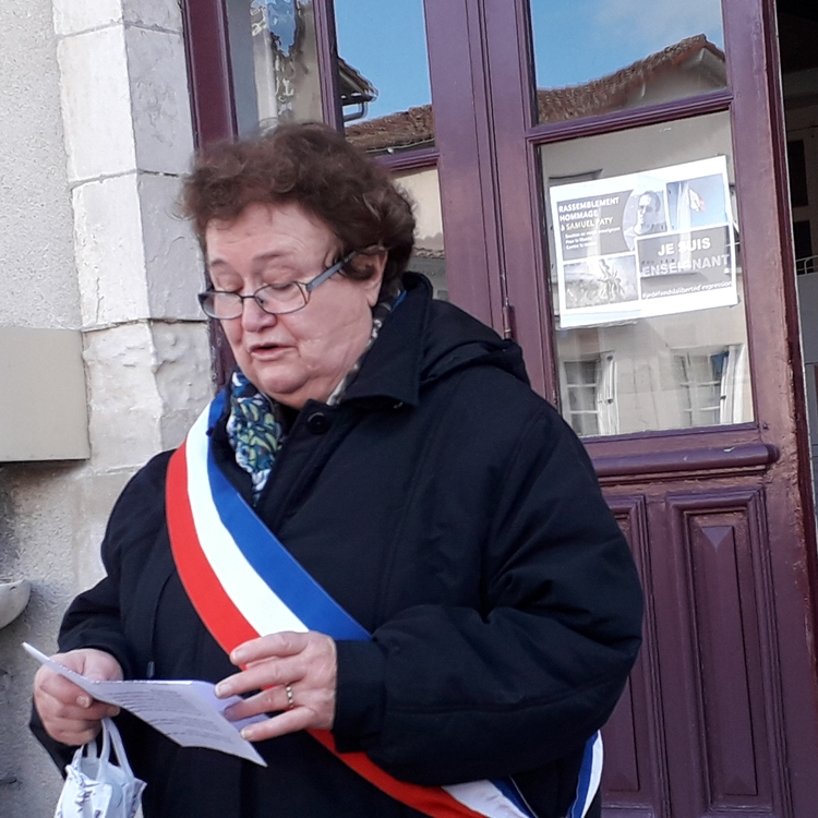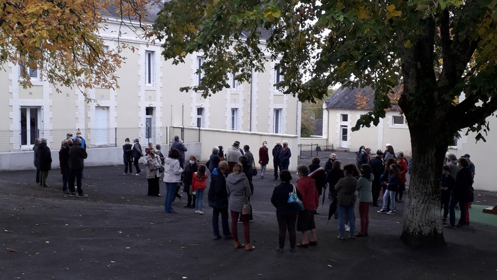 Déambulation avec plus de 60 habitants jusque à la mairie où la nouvelle maire a tenu à rappeler les valeurs de l’école publique.