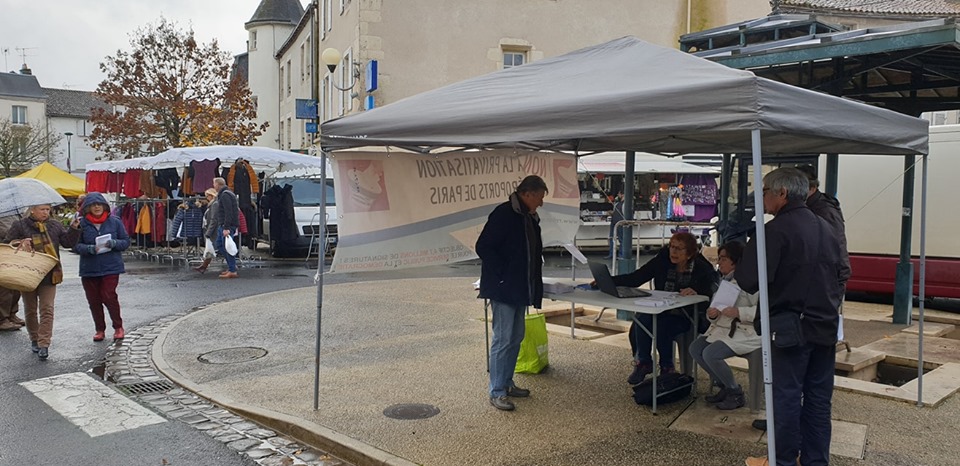 La campagne continue donc avec de prochaines dates pour des tables de votes. A noter deux moments très importants dans les prochains jours : les manifestations du jeudi 5 décembre à Poitiers (avec un camion pour faire signer !) et Châtellerault et un deuxième ADP-Thon samedi 14 décembre dans l’après-midi, square de la République (rue Magenta)