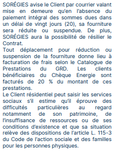 Mais tiens toi bien, une close rajoutée sur les courriers de relance stipule que si l’on paie deux jours avant la coupure, 19€ seront facturés !