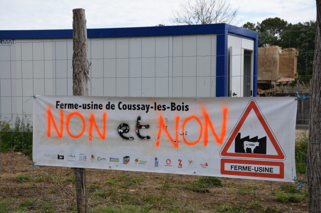 A Coussay les Bois, la lutte contre la « méga-ferme » continue et comme les élus et l’association ASPECT l’avaient annoncé, une procédure judiciaire est en cours contre le porteur du projet en plein développement. Une construction qui ressemble davantage à une usine qu’à une « ferme » . A la lecture du permis de construire, à n’en pas en douter il s’agit bien d’une usine avec des toits adaptés aux panneaux solaires mais pas au bien-être animal, en option sans doute… Les travaux avancent vite, manière de montrer qu’on ne s’en laisse pas compter par quelques « ruraux ignares » .