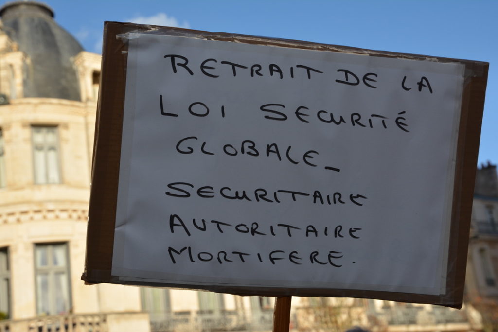 Pas d’inquiétude, il y a du monde avec les organisations qui appelaient à ce rassemblement et tout ce monde venu exprimer son refus de cet enfermement mental et législatif. Une loi succédant à une autre devrait donc rendre la démocratie plus ordonnée ? Un « ordre nouveau » se mettrait donc en place pour encadrer une démocratie mise en péril par les appareils photos de la presse, par des photographes ? Et le fichage des militant.e.s permettrait de mieux protéger la démocratie ? Et la révision de la loi 1901 sur les associations mettrait fin aux dérives islamo-gauchistes ? Et quoi d’autre encore ?