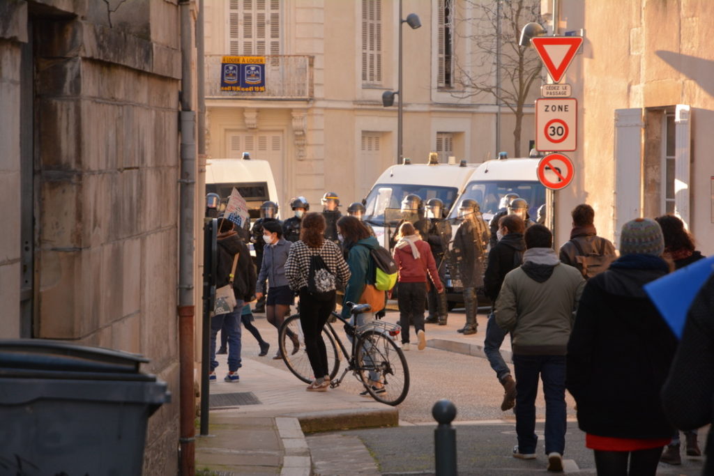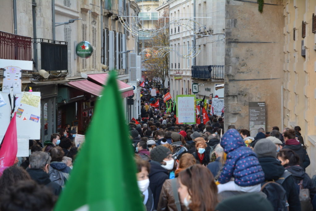 Un dernier mot sur la fin de la manif après le retour place de la mairie et un nouveau face à face enfumé entre force de l’ordre et jeunes (?) manifestant.e.s à proximité du commissariat : même France 3 en a parlé, c’est dire…