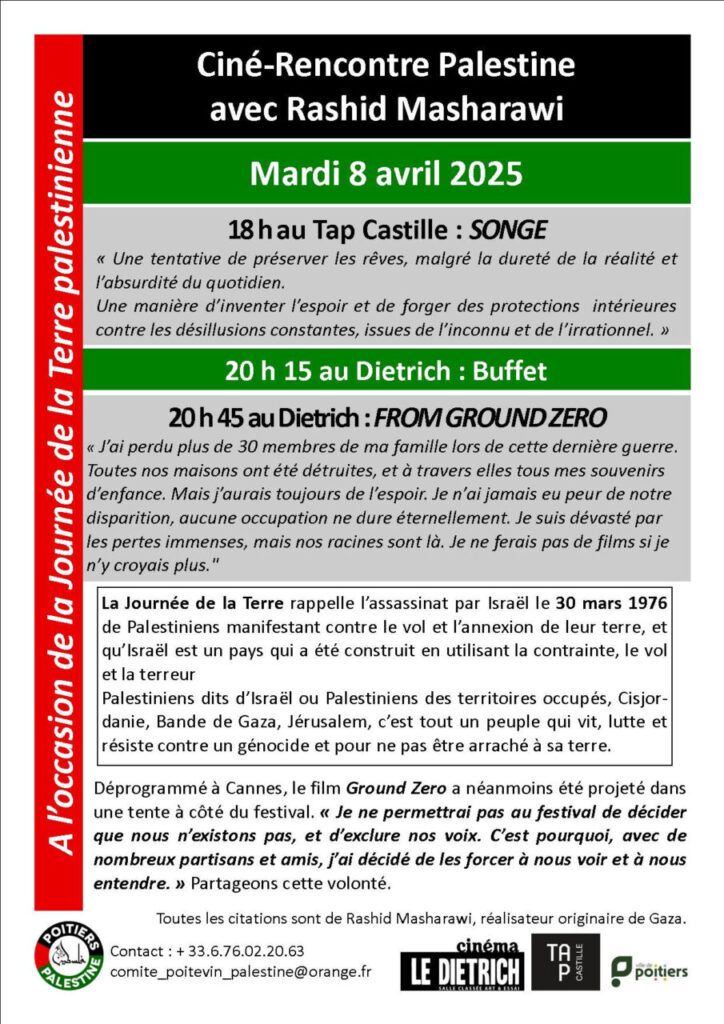 Ciné, buffet et débat à Poitiers. Ciné-rencontre Palestine avec Rashid Masharawi