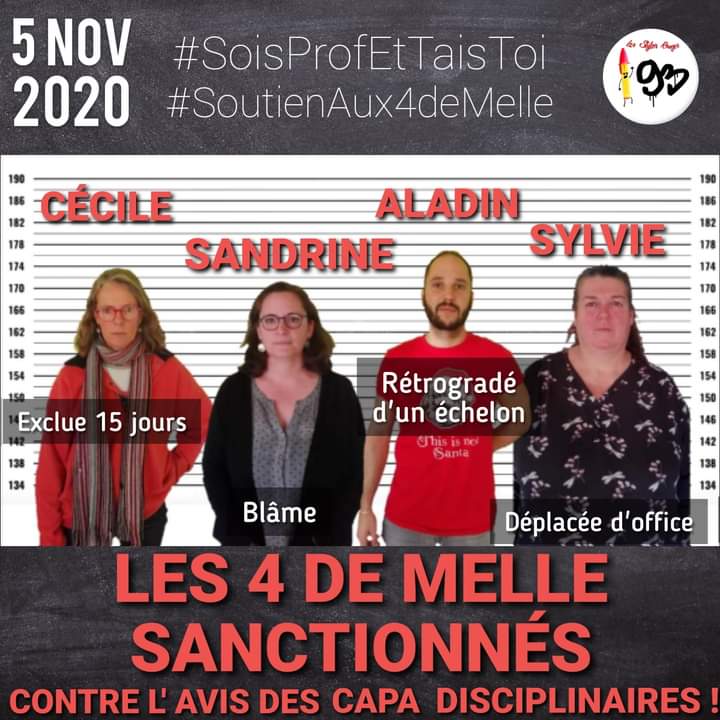 Ces sanctions ignominieuses, prises contre l’avis des CAPA disciplinaires lors desquelles la rectrice n’a jamais obtenu la majorité et a même été désavouée, ne poursuivent qu’un objectif : faire taire la mobilisation enseignante. Les « 4 de Melle » n’ont pourtant pas l’intention de baisser la tête.