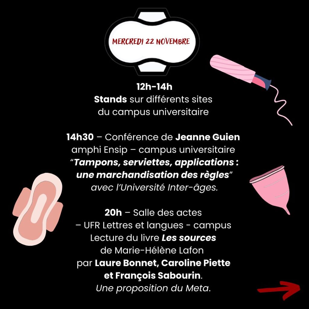 Une myriade d’événements pour évoquer un cycle mensuel qui dure en moyenne une quarantaine d’années, celui des menstruations. Plus d’informations ici