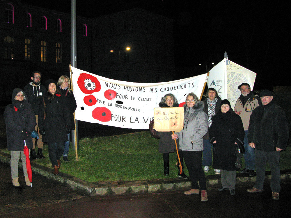 Nous étions encore plus de dix présents vendredi 1er février par un froid de canard au rassemblement « Nous voulons des coquelicots « à Loudun ; Beaucoup de Loudunais découvrent encore ce mouvement du collectif pour la fin des pesticides et le respect de l’environnement .