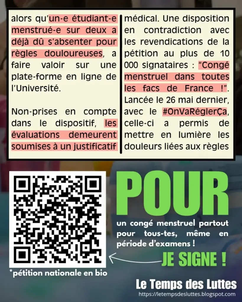• L’Université de Poitiers vote le congé menstruelle. Victoire d’étape.