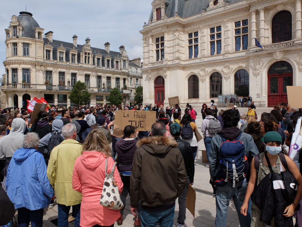 Au moins 500 personnes à vue de nez ont défilé dans le centre ville de Poitiers « contre le racisme, les violences policières, les expulsions et pour l’égalité des droit » à l’appel de nombreuses organisations de gauche et d’associations antiracistes et pour les droits de l’homme.