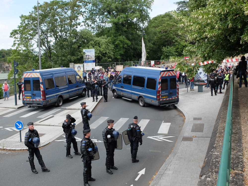 Les gendarmes mobiles (en nombre) ont empêché que la manifestation aille vers la gare et les boulevards, sans faire de démonstration d’agressivité.