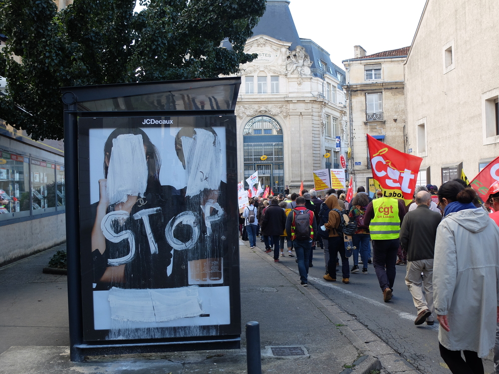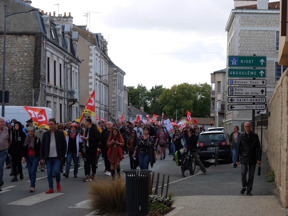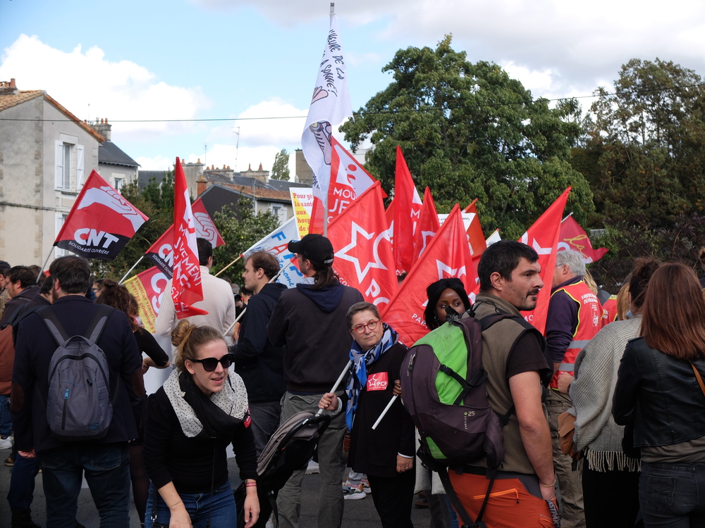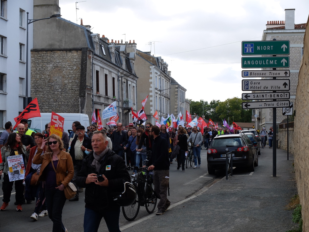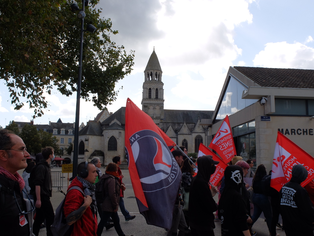 Certains partis de gauche était présents avec tracts et drapeaux (PCF, NPA, LO, Génération.s) ainsi que les Gilets jaunes Poitiers sud