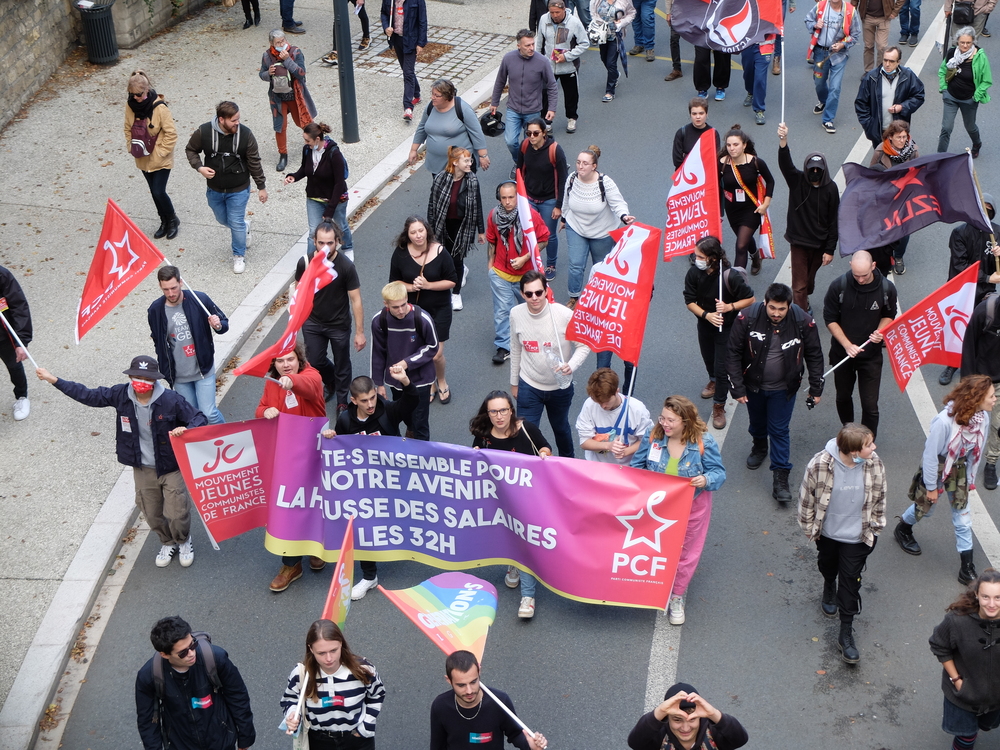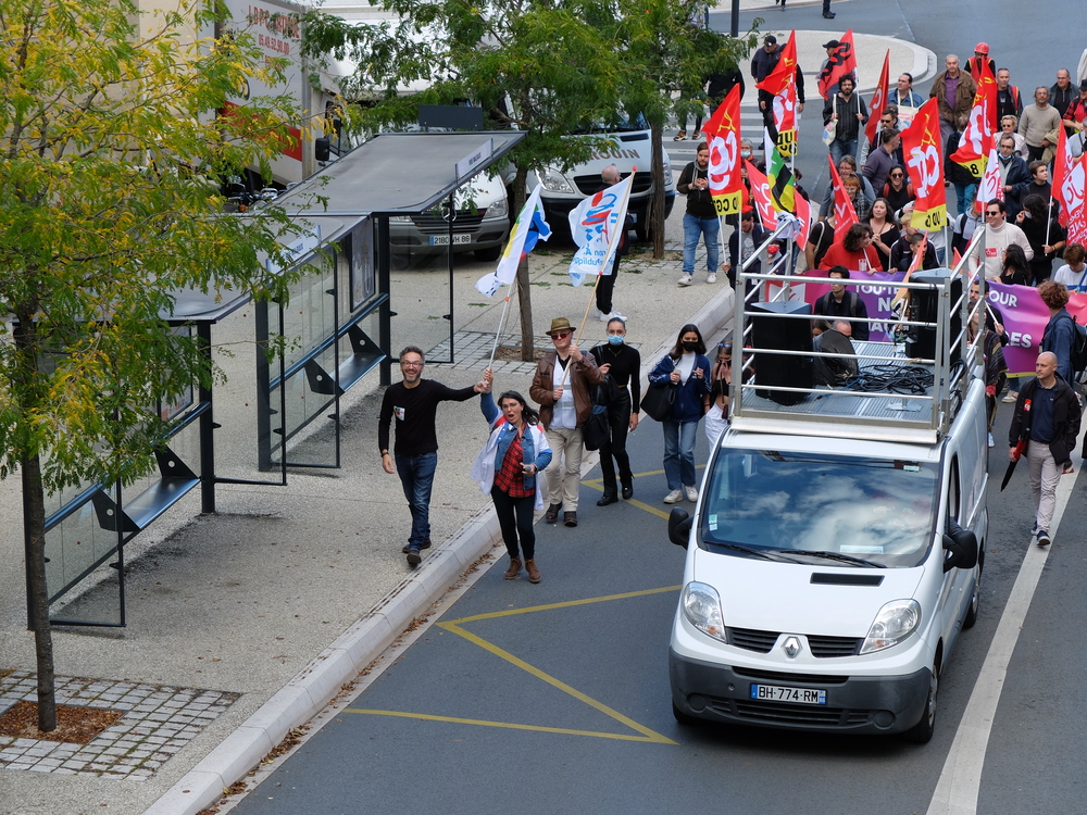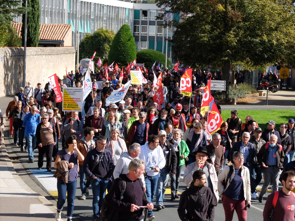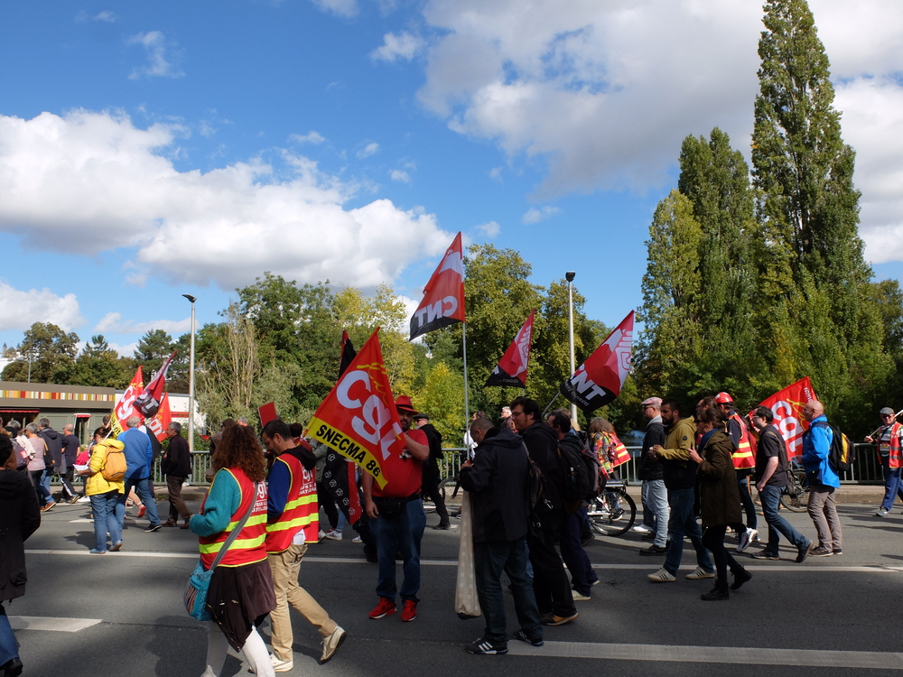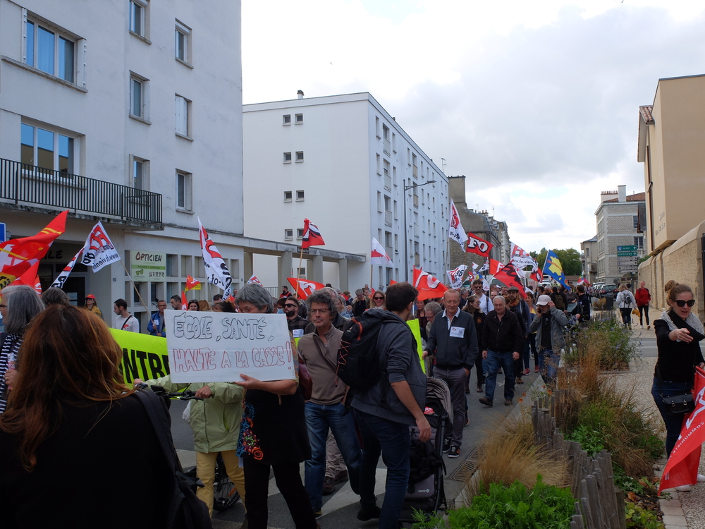 Certains partis de gauche était présents avec tracts et drapeaux (PCF, NPA, LO, Génération.s) ainsi que les Gilets jaunes Poitiers sud