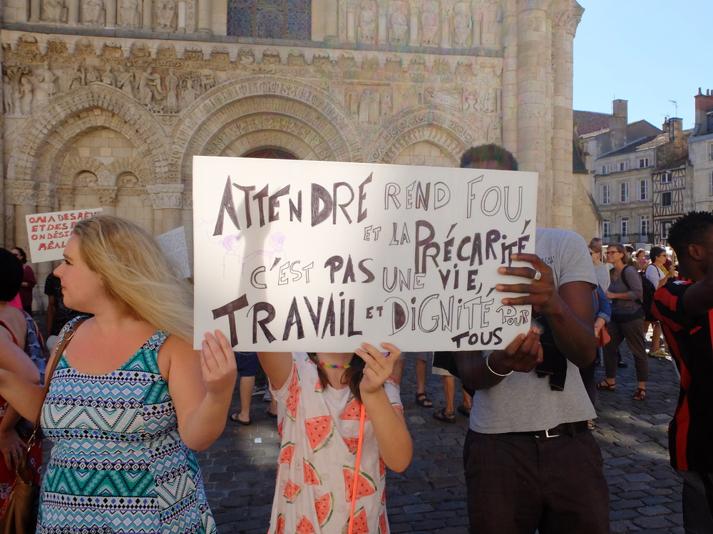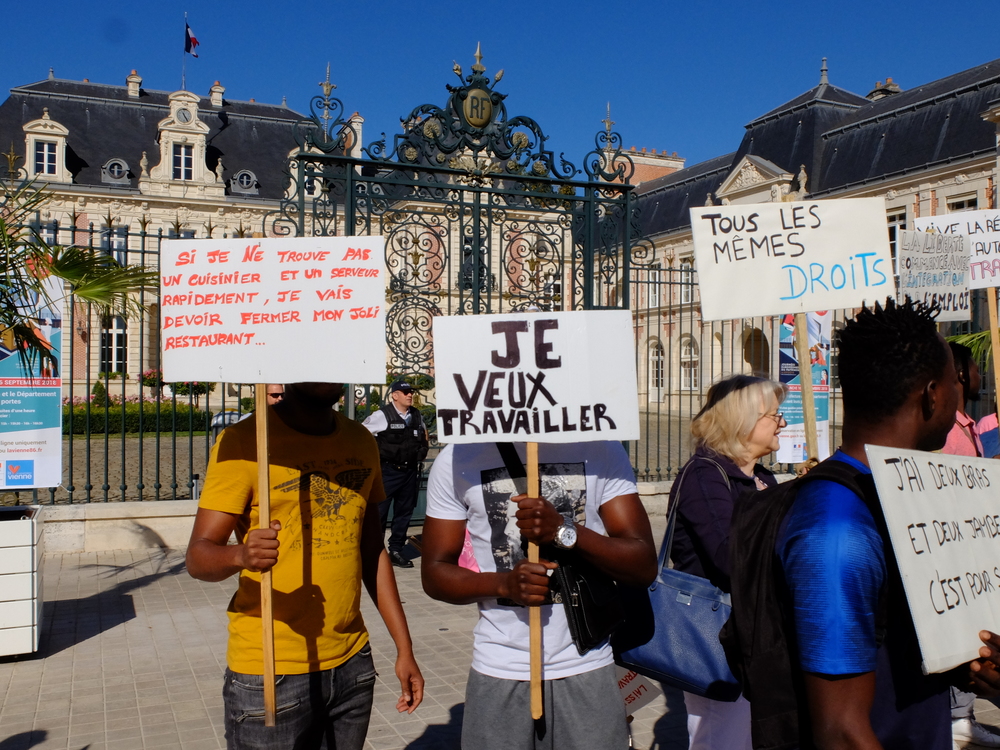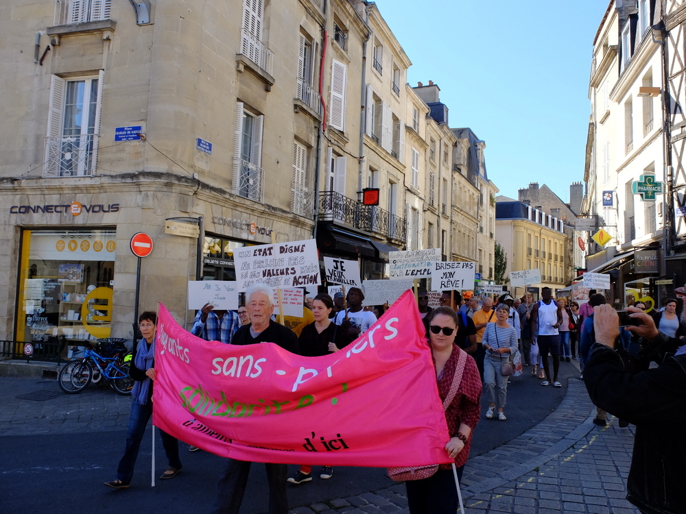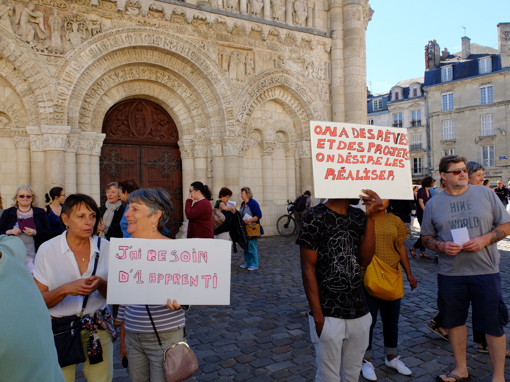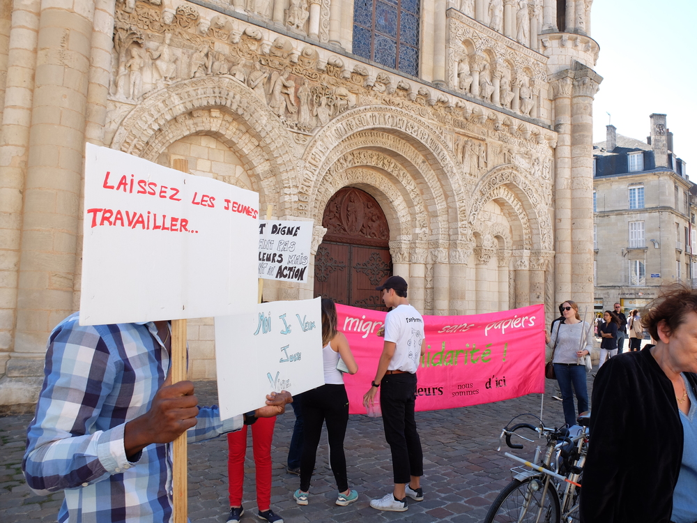 Pour répondre aux insultes racistes (« assistés, ils viennent prendre le pain/les allocs des français ! ») et pour répondre à l’urgence de travailler et d’embaucher pour vivre, le collectif EGM (États Généraux des Migrations) qui regroupent de nombreuses organisations de solidarité avec les migrant-es, avait appelé à une mobilisation ce samedi 15 septembre 2018 à Poitiers.