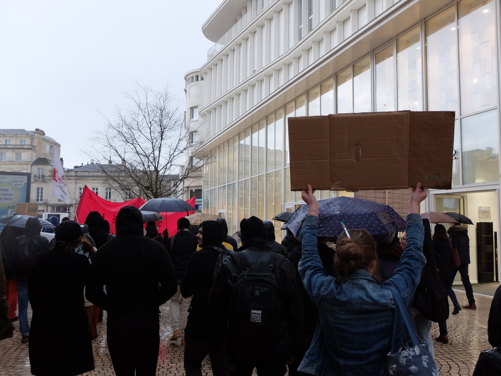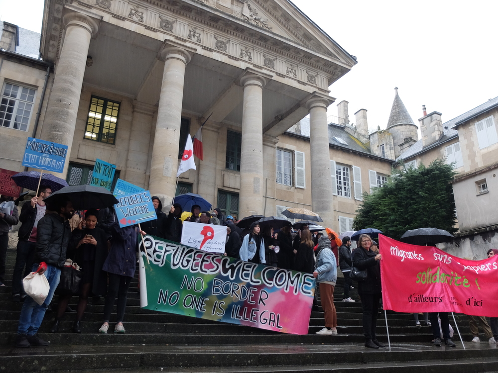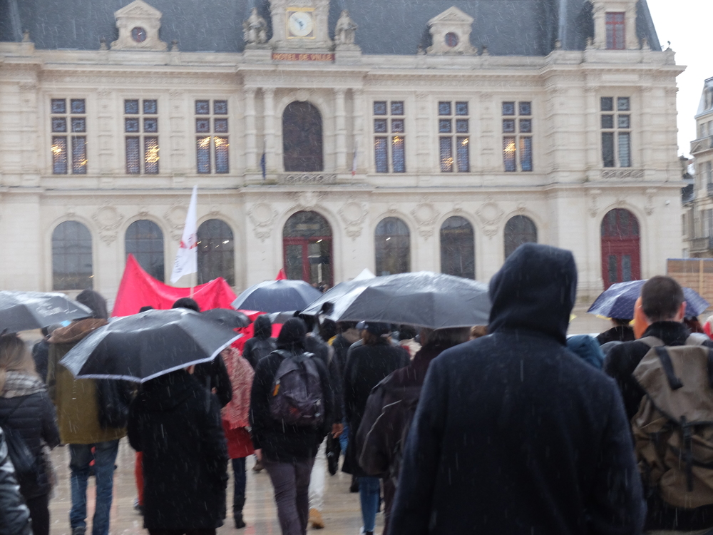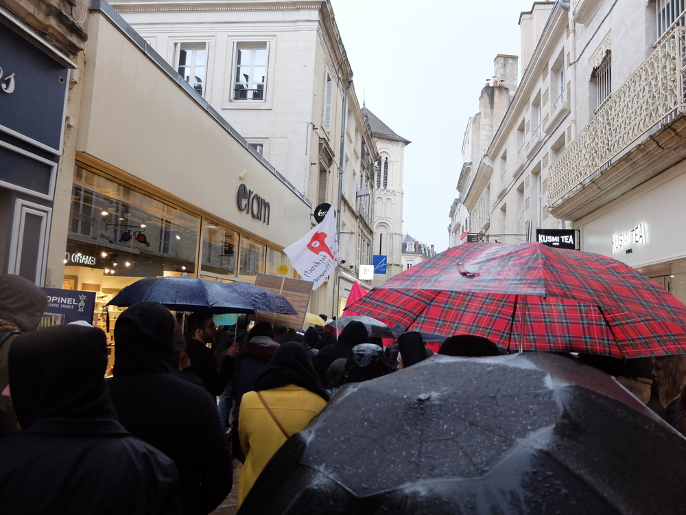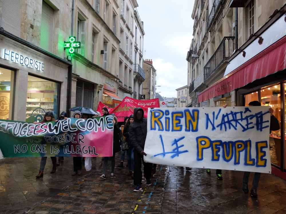 Samedi 17 mars sous une pluie battante, à la suite de la journée consacrée aux « États Généraux des Migrations » qui a regroupé une journée entière 32 associations et collectifs de la Vienne qui ont fait un état des lieux de la situation actuelle, montrer ce qui ne va pas localement et proposer des propositions alternatives.