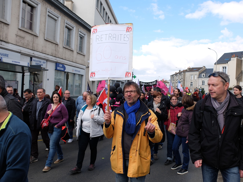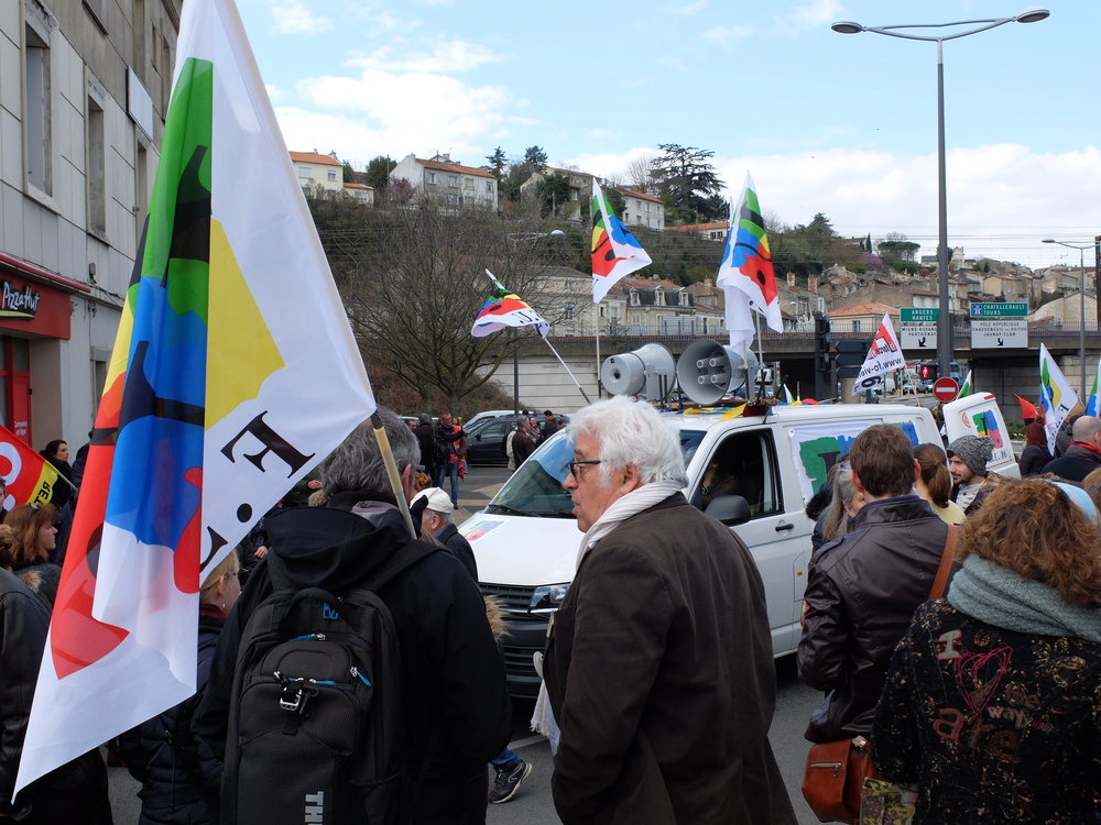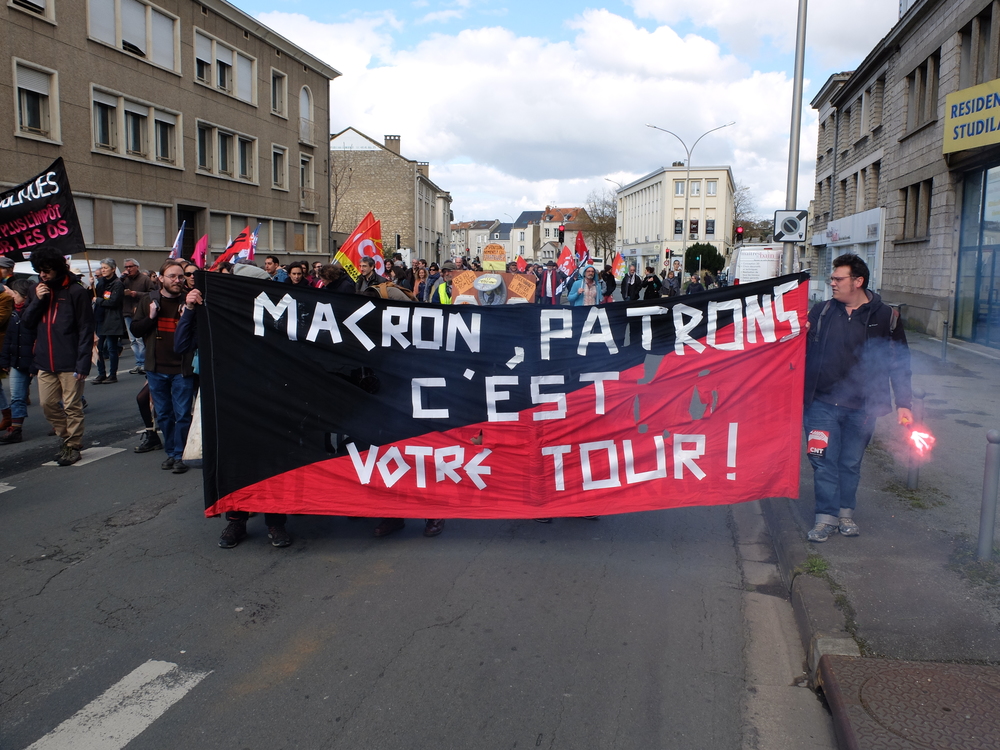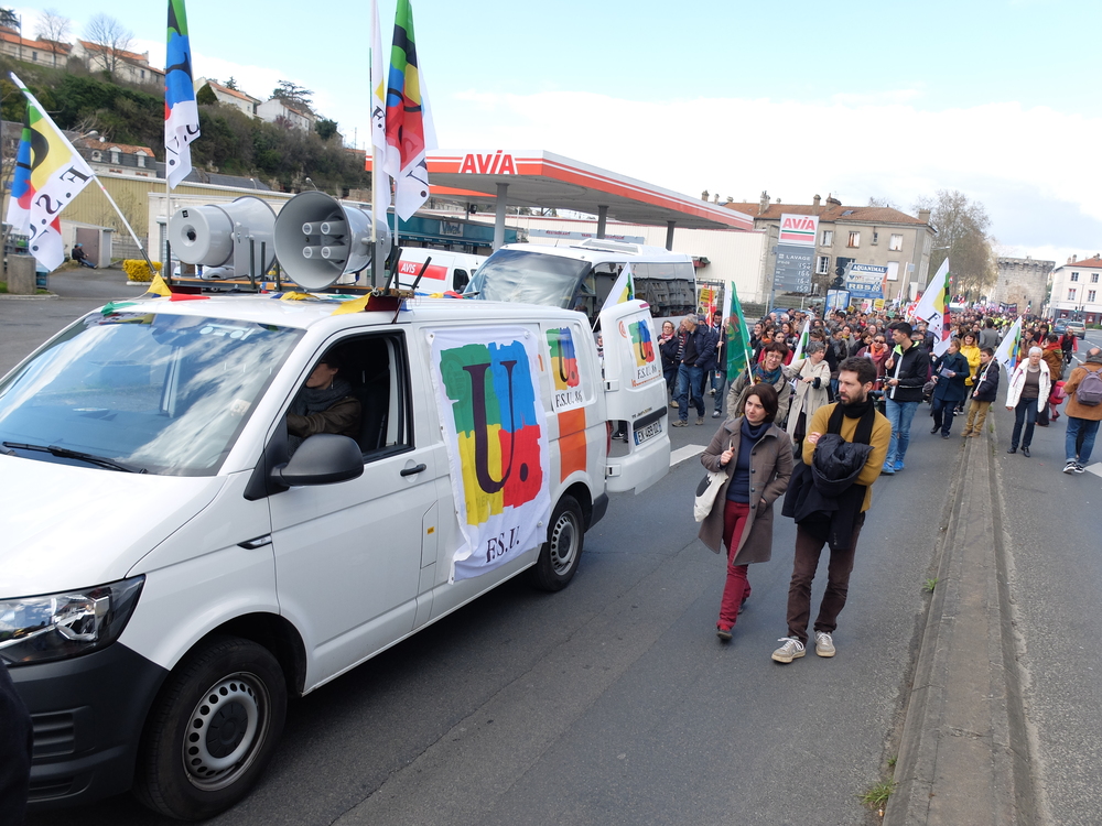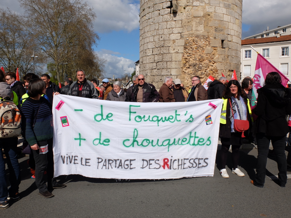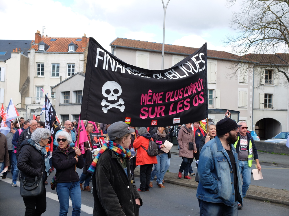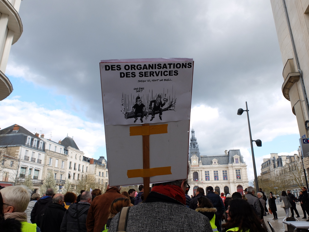 Il y a beaucoup moins de pancartes et créations personnelles dans les manifestations syndicales que dans la manifestation des jeunes pour le climat le vendredi précédent (voir l’article de web86.info) ou celle du samedi (article de web86.info ici) . Mais il faut dire que le syndicalisme est déjà un espace de débat et un outil de négociation et de revendication en soi.