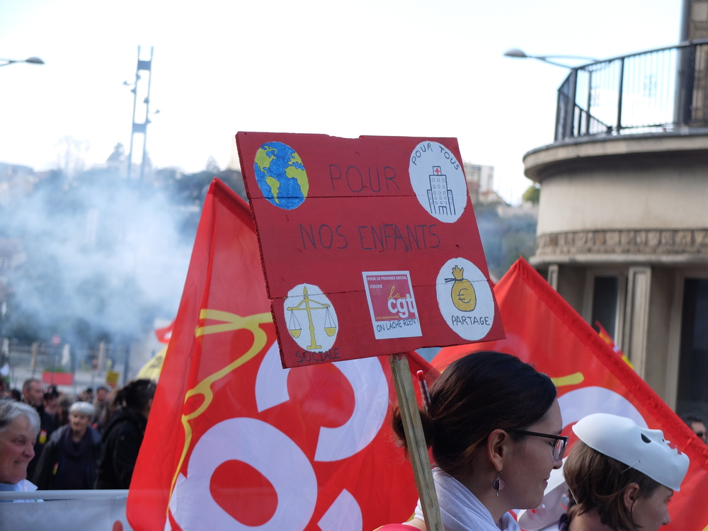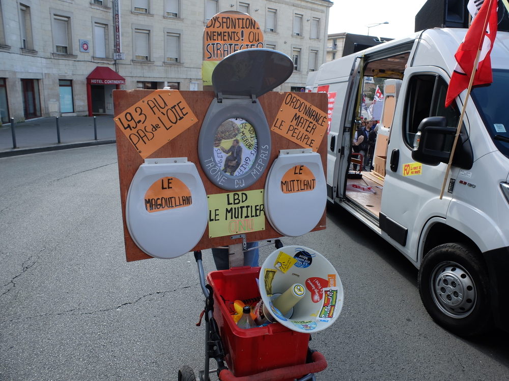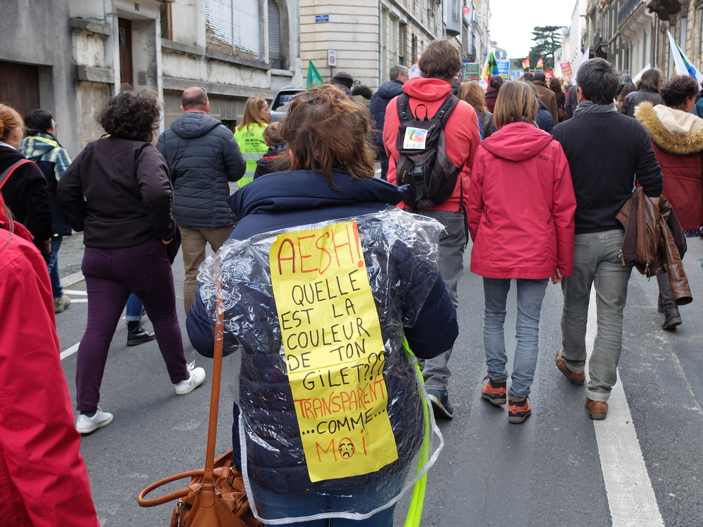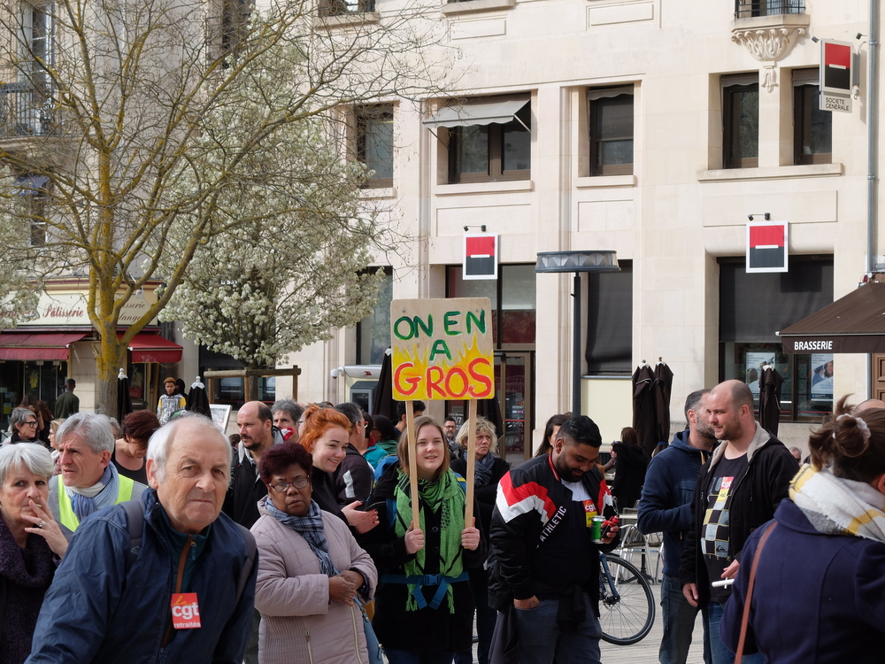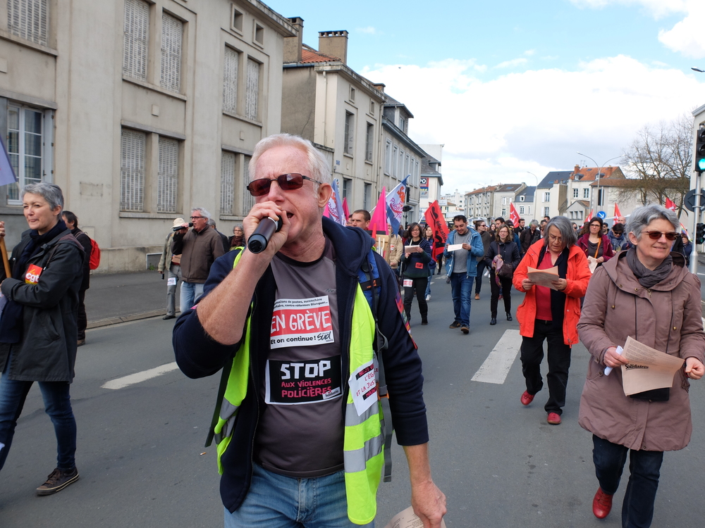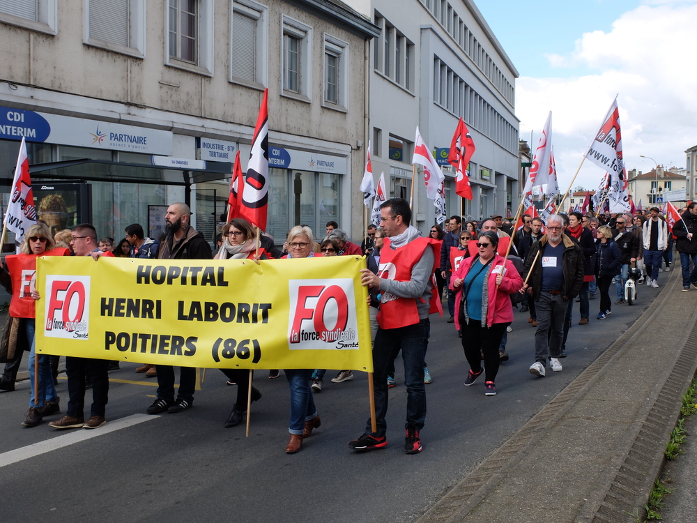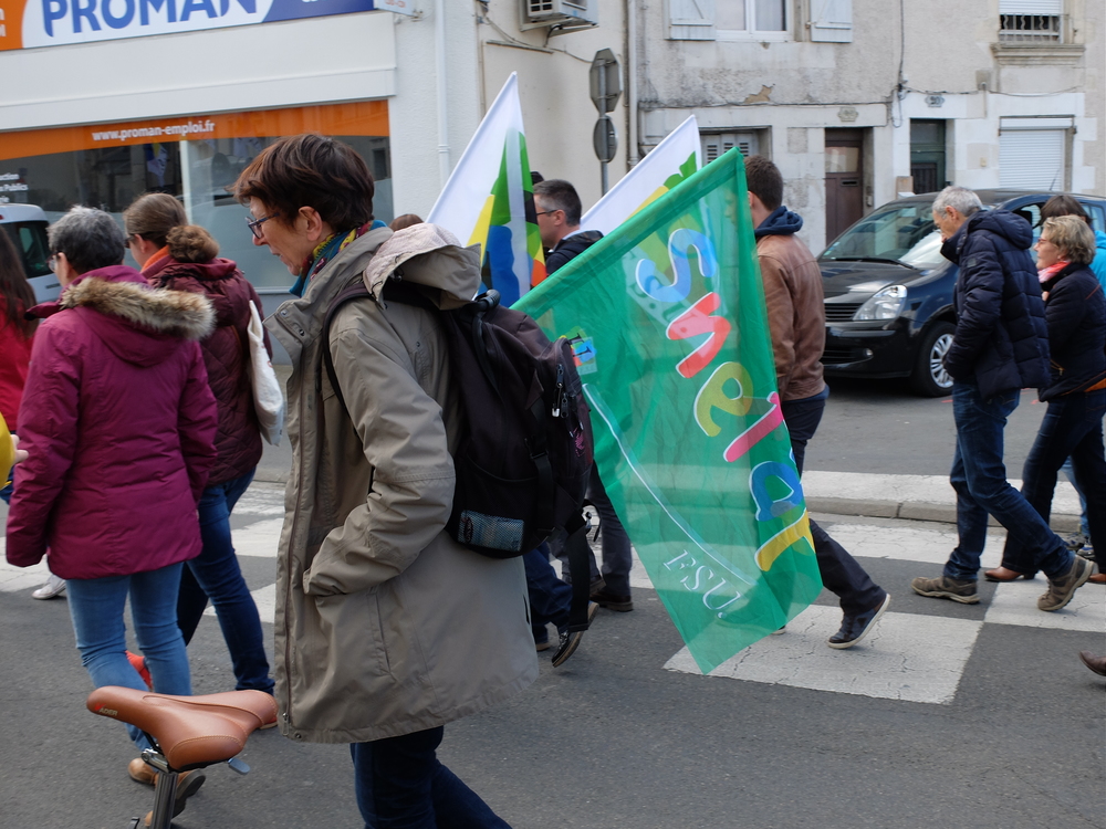 Il y a beaucoup moins de pancartes et créations personnelles dans les manifestations syndicales que dans la manifestation des jeunes pour le climat le vendredi précédent (voir l’article de web86.info) ou celle du samedi (article de web86.info ici) . Mais il faut dire que le syndicalisme est déjà un espace de débat et un outil de négociation et de revendication en soi.