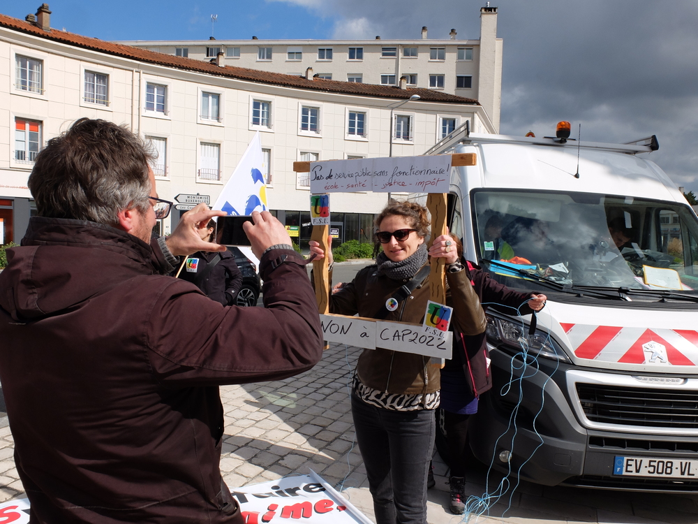Tout au long du cortège la FSU photographiait pour son hilarant « photomacron » (à retrouver en cliquant ici)