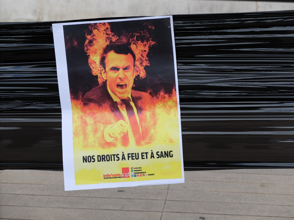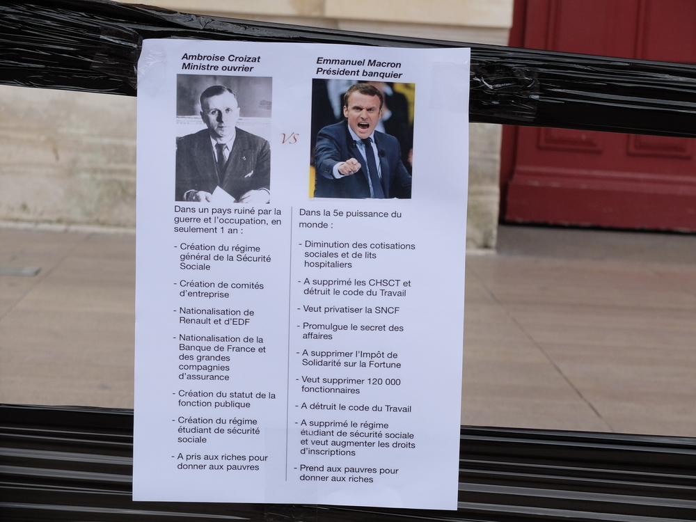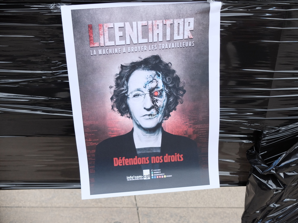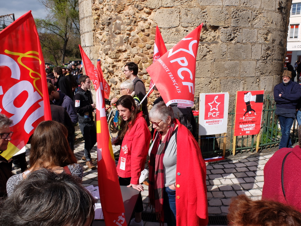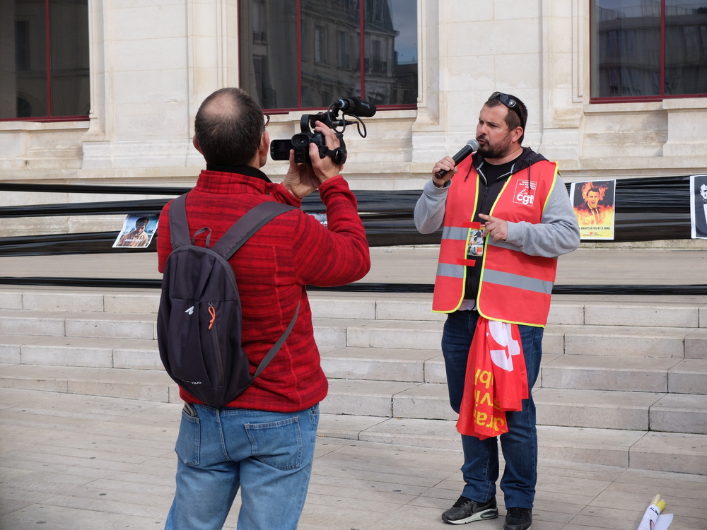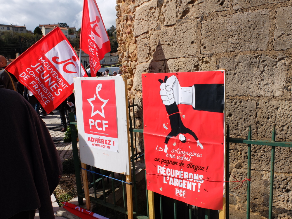 À l’arrivée place d’Armes, cette même CGT avait tendu des affiches devant la Mairie
