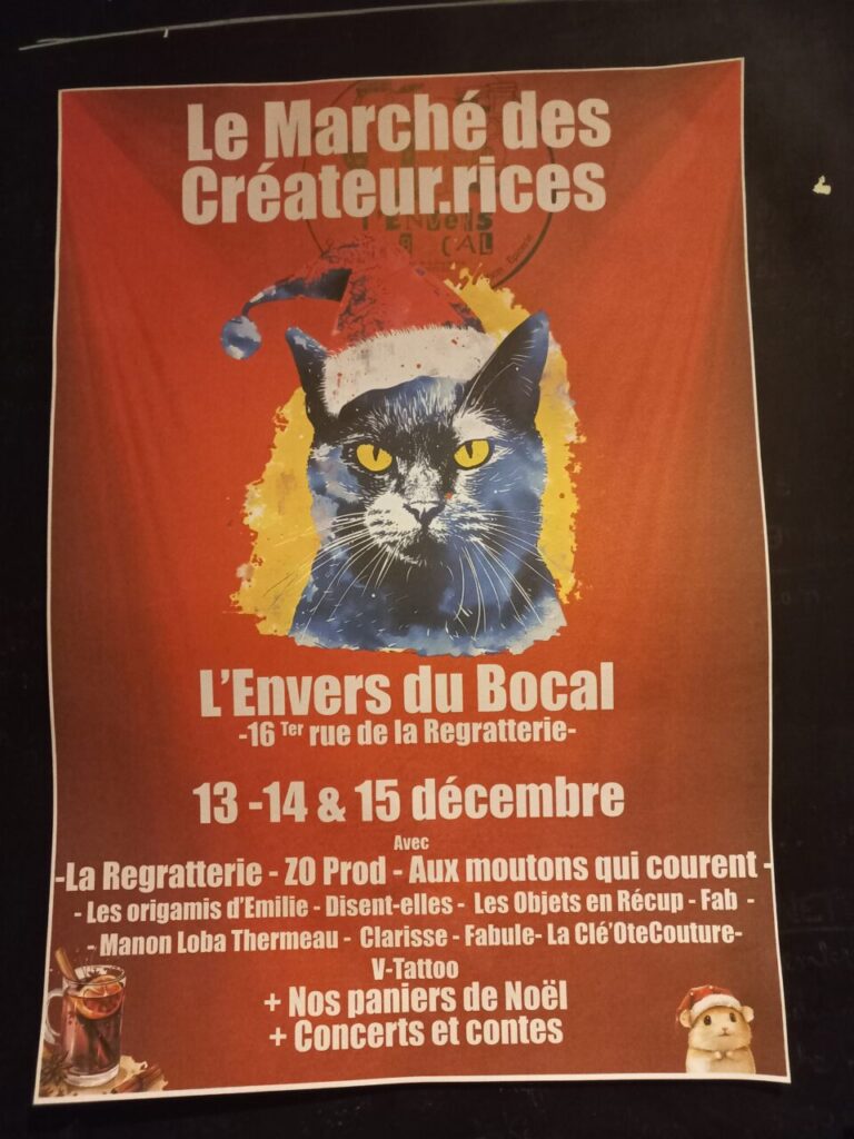 Les 13, 14 et 15 décembre, l’Envers du Bocal vous invite à son Marché de créateurs et créatrices.