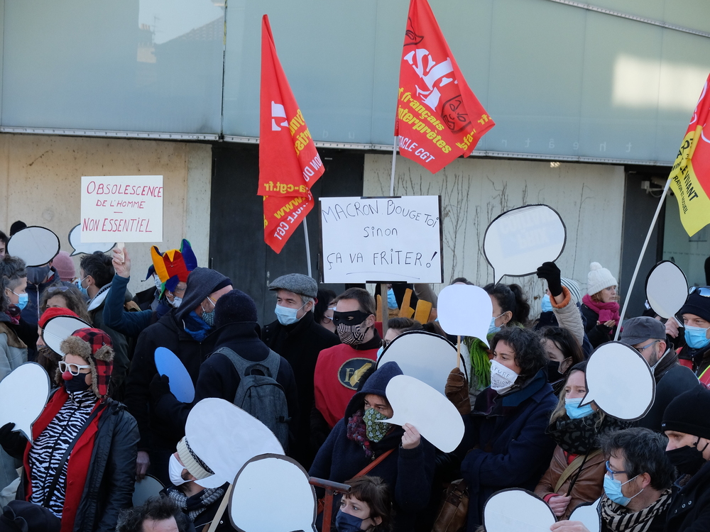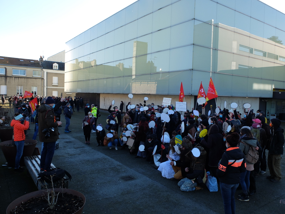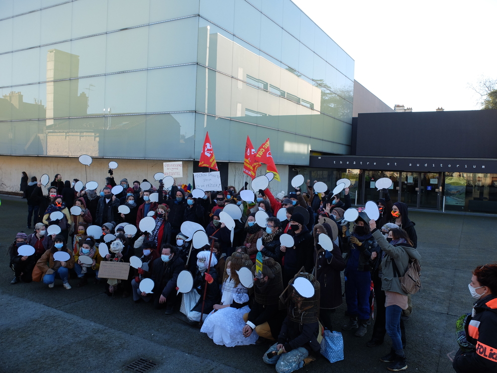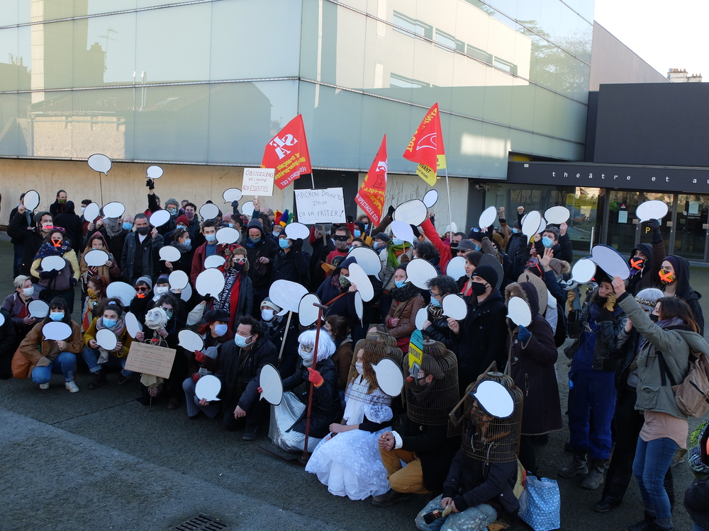 C’était ce mardi 19 janvier à Poitiers devant le TAP de Poitiers à l’initiative de la CGT Spectacle (voir le texte d’appel ici)