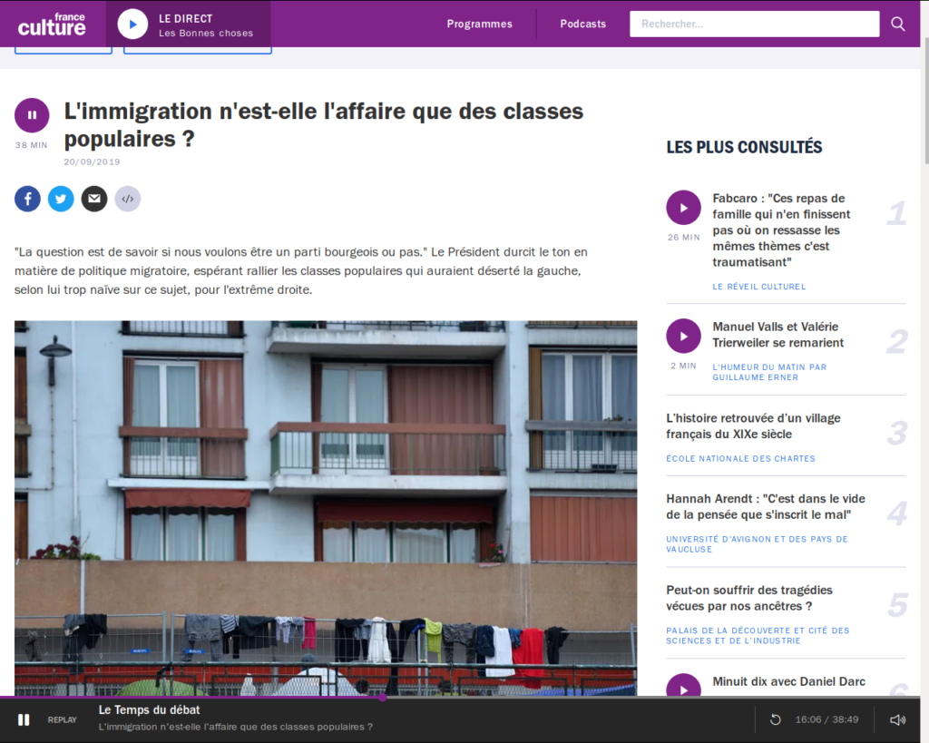 Une émission de France Culture avec l’universitaire poitevin William Berthomière, la sociologue Isabelle Coutant, le député LREM et ex-Sarkozyste, Frédéric Lefebvre, et la député démissionnaire de LREM Aina Kuric À écouter en cliquant ici