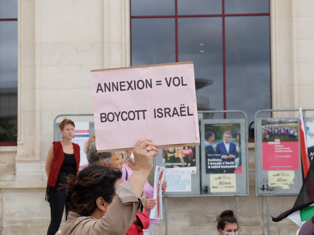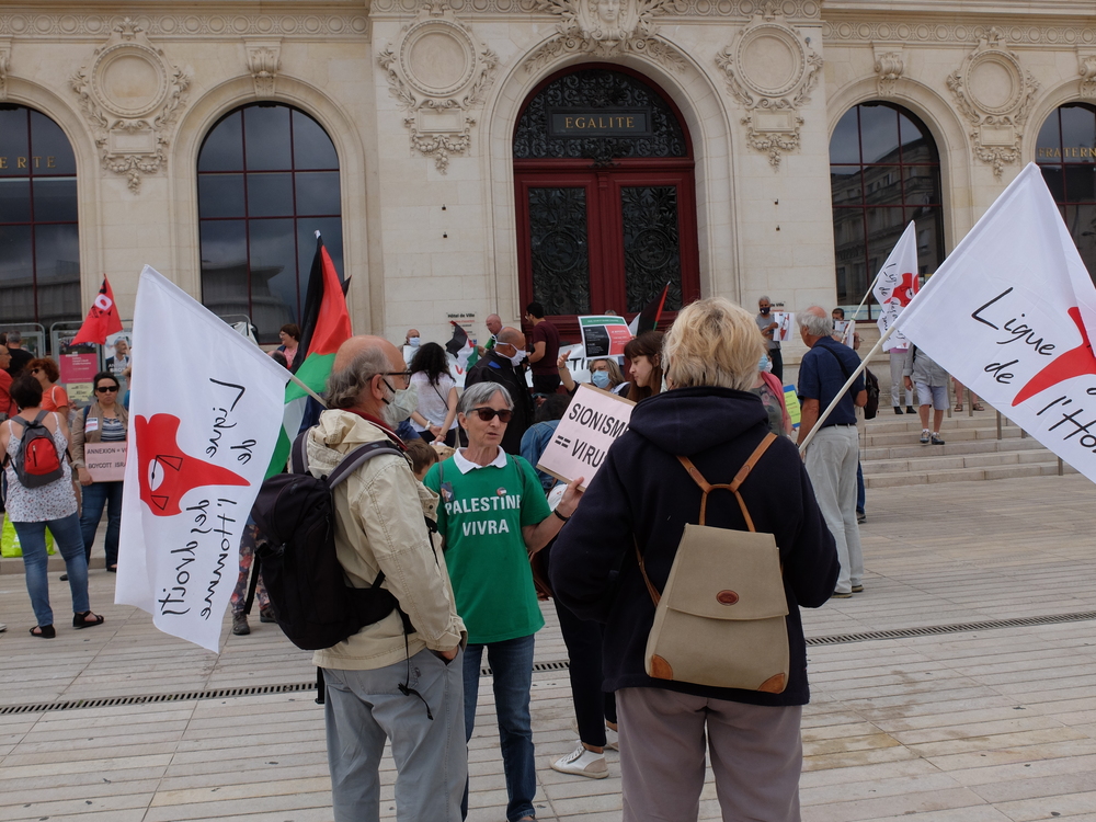 Une soixantaine de personnes étaient rassemblée contre la catastrophe de l’annexion programmée et imminente de Territoires palestiniens par Israël