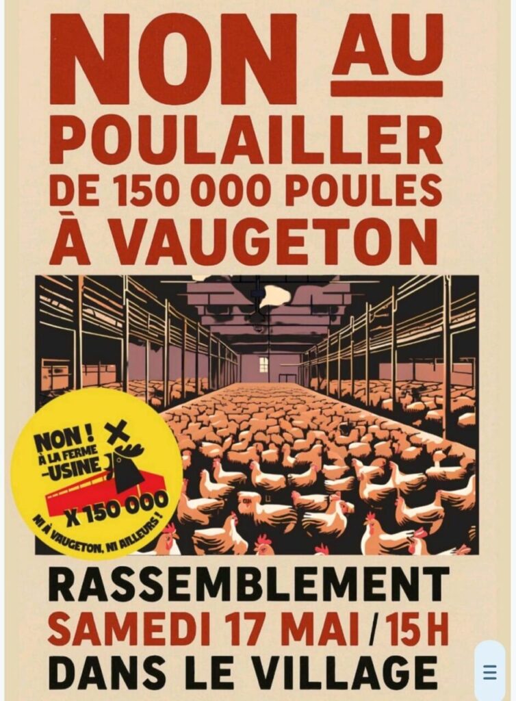 À lire et à signer ici : https://www.change.org/p/non-%C3%A0-l-installation-d-une-ferme-usine-de-150-000-poules-%C3%A0-vaugeton.