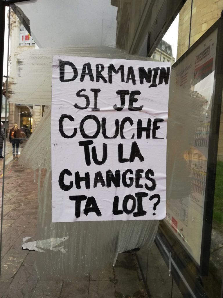 Saisie au vol, (merci Emilie !) rue des Cordeliers à Poitiers pendant la manifestation de samedi 5 décembre : pas sûr que cette affiche soit restée très longtemps sur la vitre de l’abri-bus…