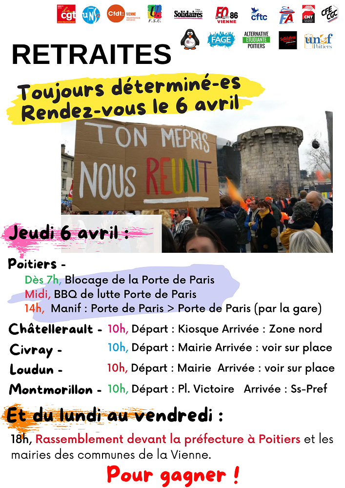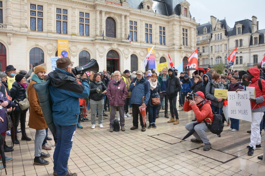 Le rassemblement appelé le 1er avril à Poitiers pour dénoncer ces projets de loi toujours plus répressifs a réuni environ 250 personnes qui ont ensuite « troublé » la quiétude des rues piétonnes en y défilant avec force slogan.