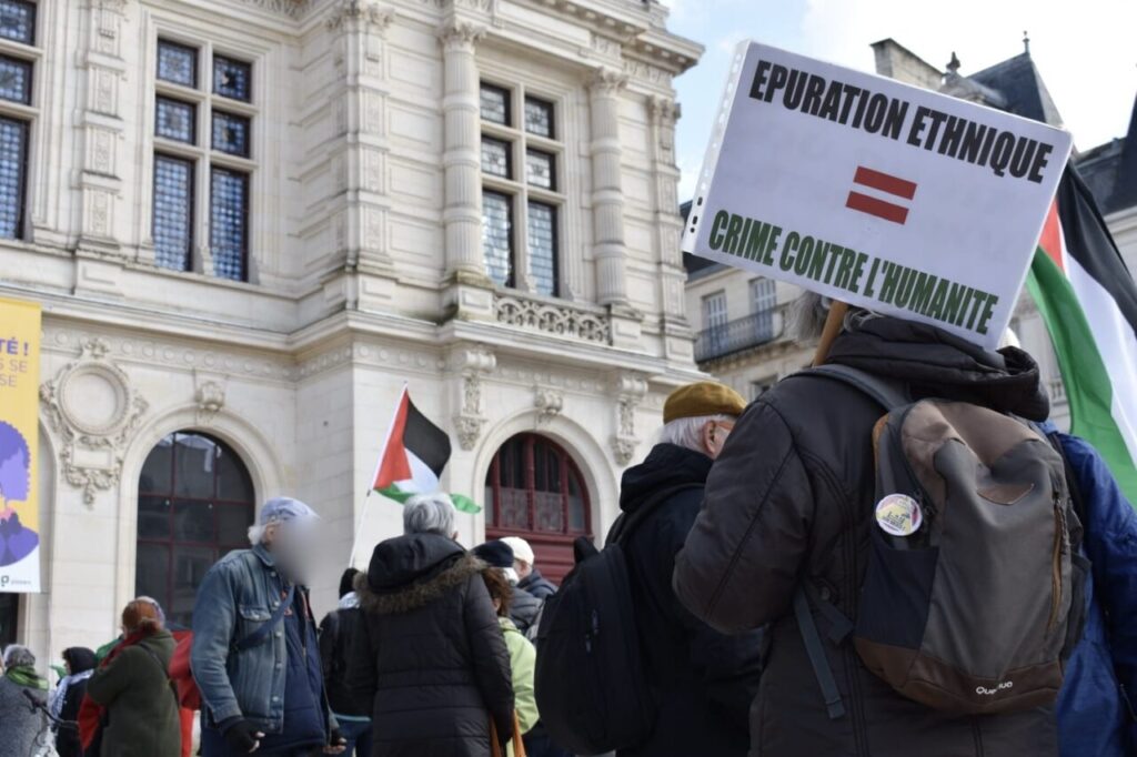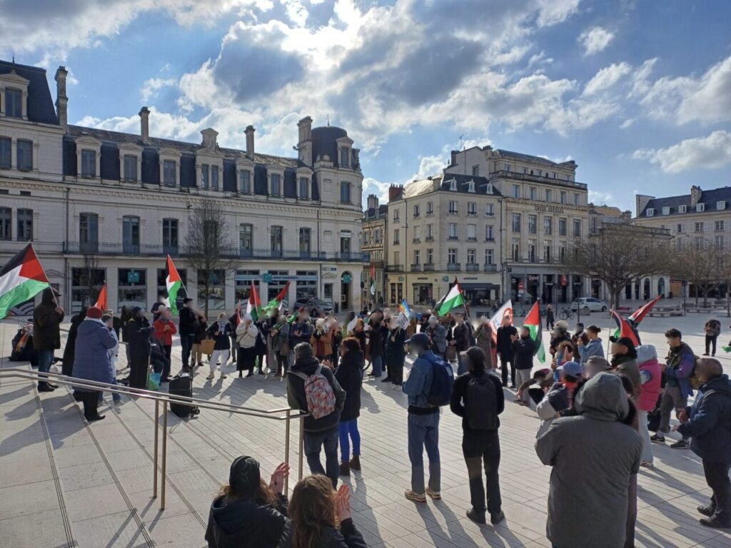 En pleine vacances scolaires (mais pas pour les Palestiniens…) plus de 80 personne se sont retrouvées sur la place de la mairie pour le retour d’un rassemblement à Poitiers après plusieurs semaines de suspension.