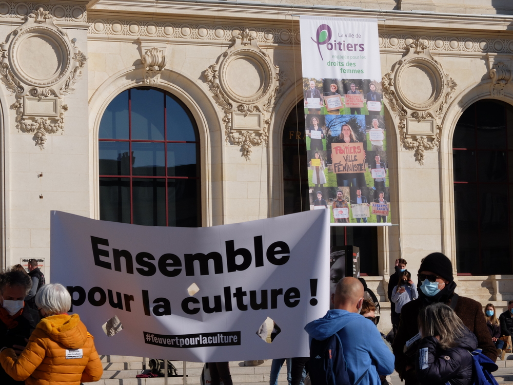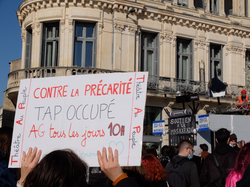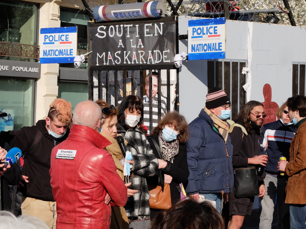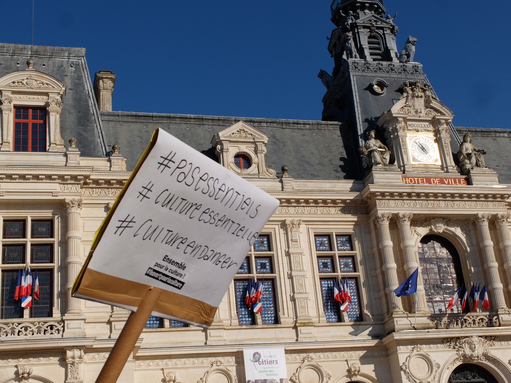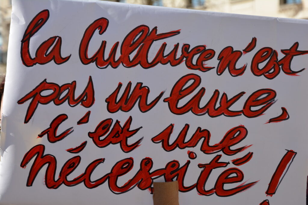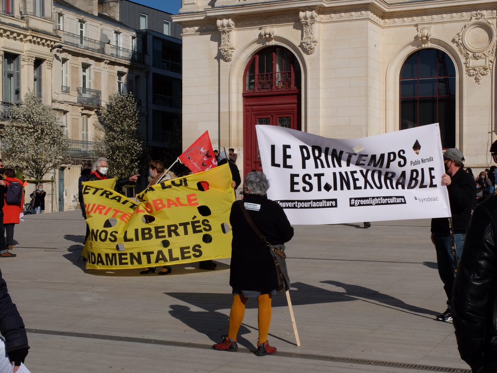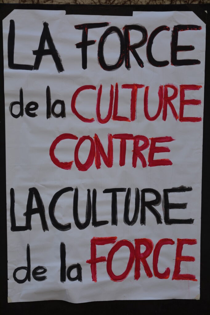 A la Madeleine, elles.ils partirent 300… et grossirent, grossirent jusqu’à être le double sur la place de l’hôtel de ville. Placée sous le signe d’une double mobilisation, la jonction entre la 9ème manifestation pour les libertés publiques et contre les politiques liberticides du gouvernement et celle des acteurs et actrices de la « Culture en lutte » s’est faite sans difficulté. Le contraire aurait été étonnant. Tellement est partagé, de la liberté d’expression à la défense des droits sociaux, de la liberté de créer à la liberté de penser, de celle de s’associer à celle de s’exprimer, sur scène, dans la rue ou ailleurs.
