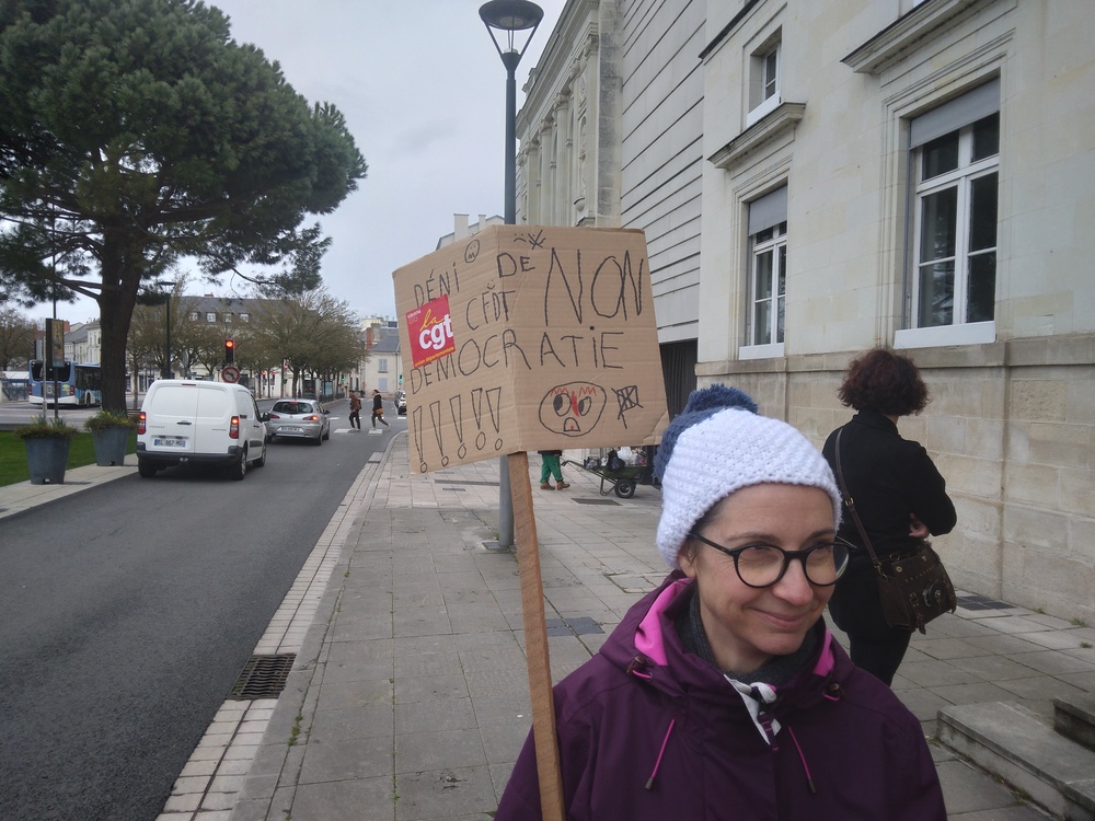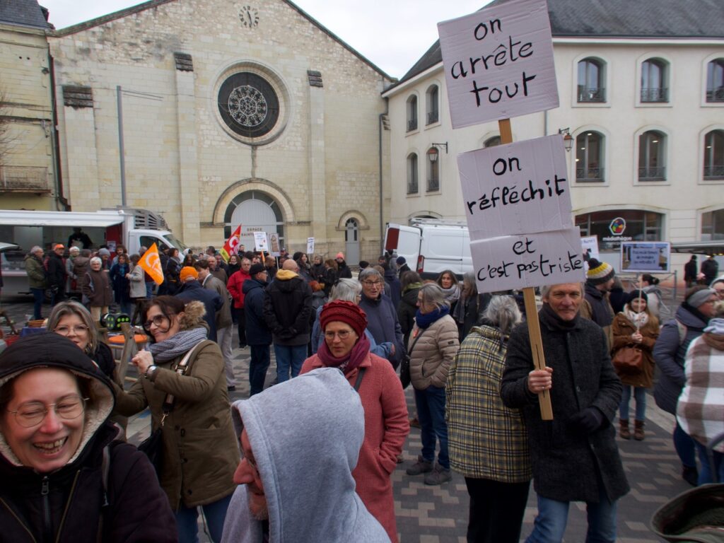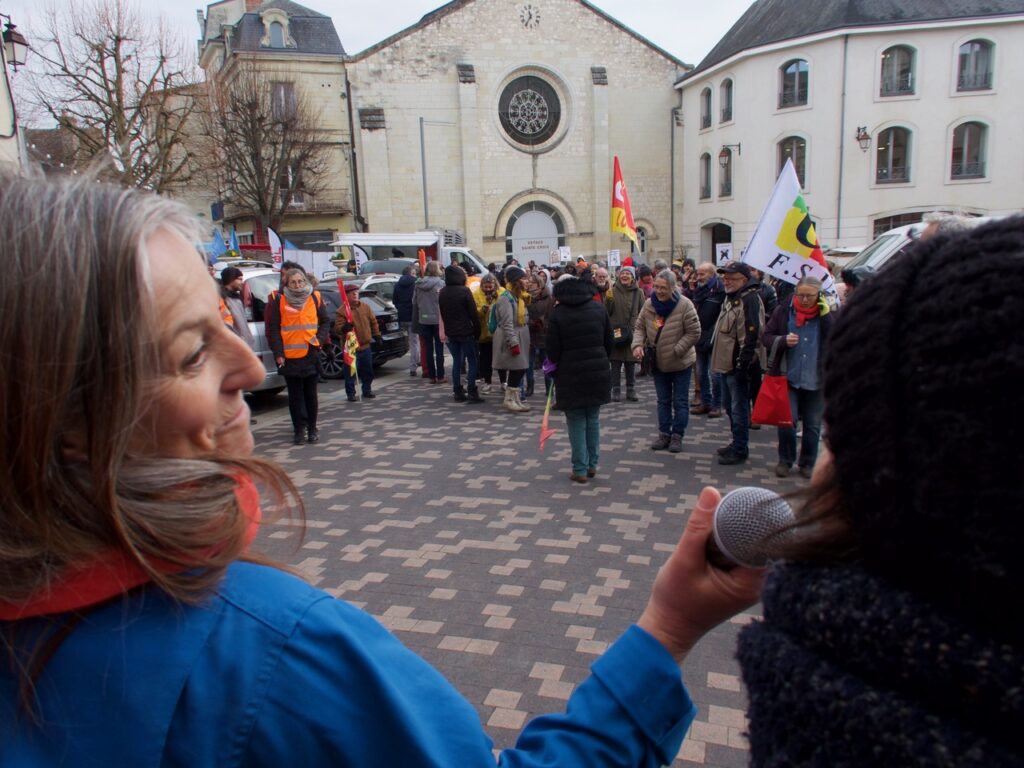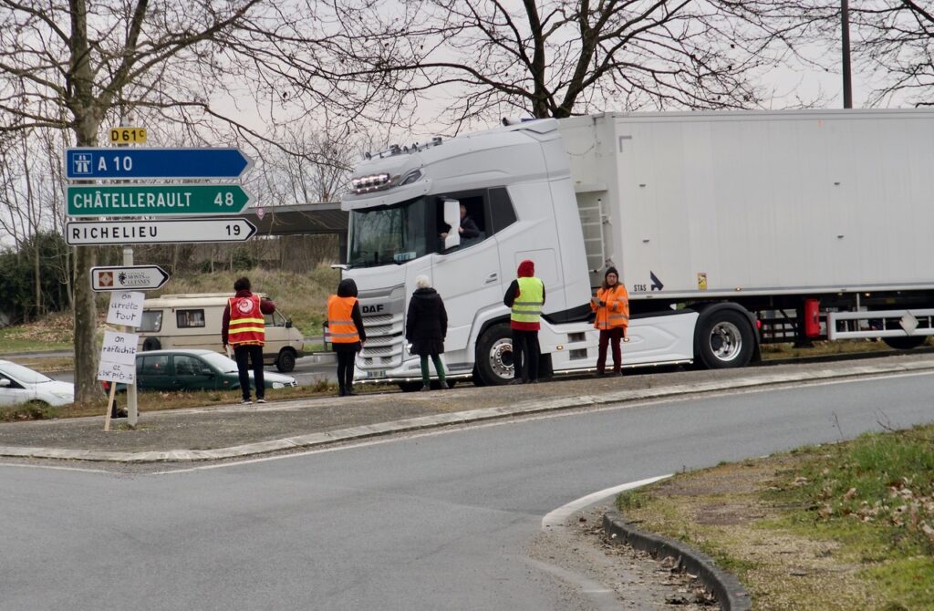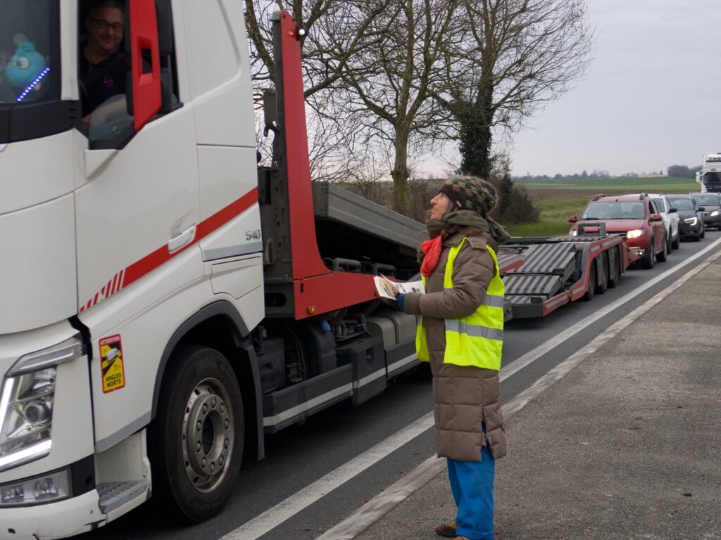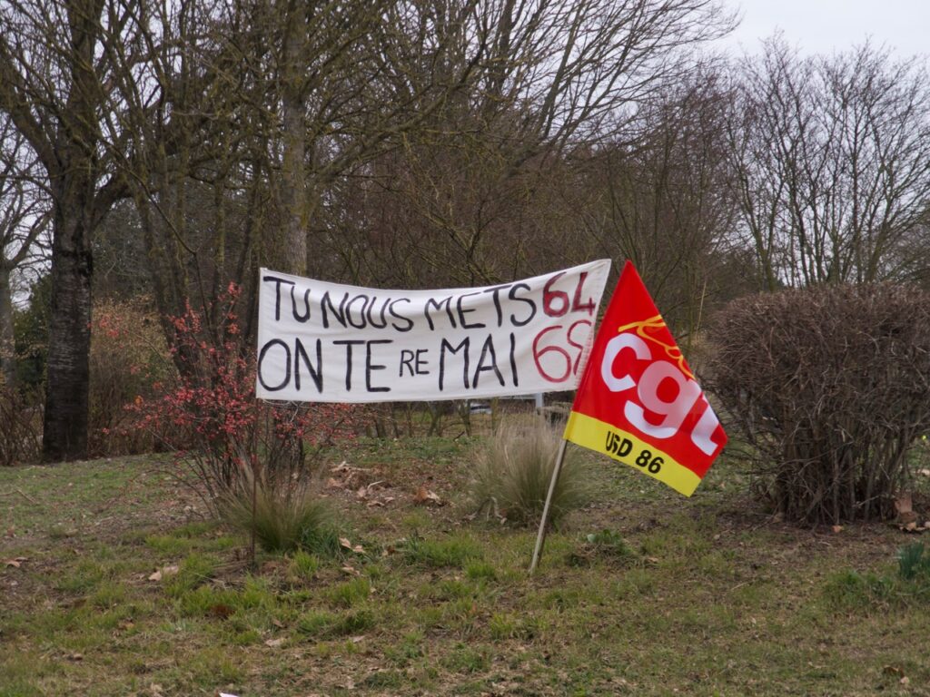 Barrages filtrants et tractage, ce mardi 7 mars au rond-point de la route de Poitiers dès 7 h du matin et manifestation unitaire à 10 h dans les rues de Loudun. Les Rosies étaient là.