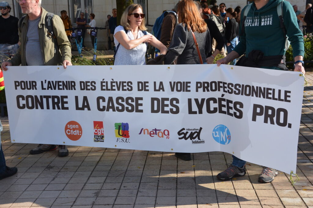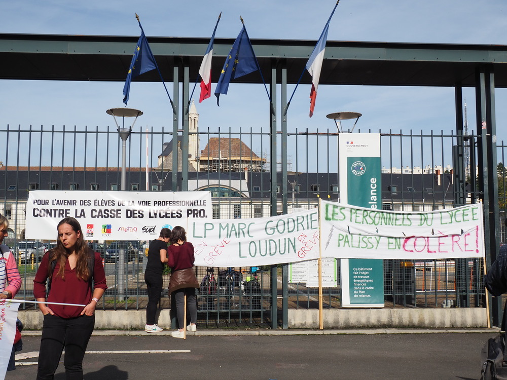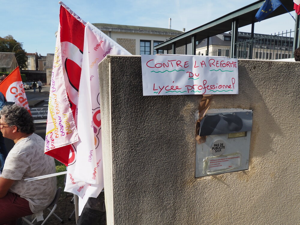 Après la place de la préf, direction le rectorat où un rassemblement était organisé par l’intersyndicale des Lycées Professionnels en grève, très, très mobilisés contre un nouveau projet remettant en cause l’existence même du secteur…