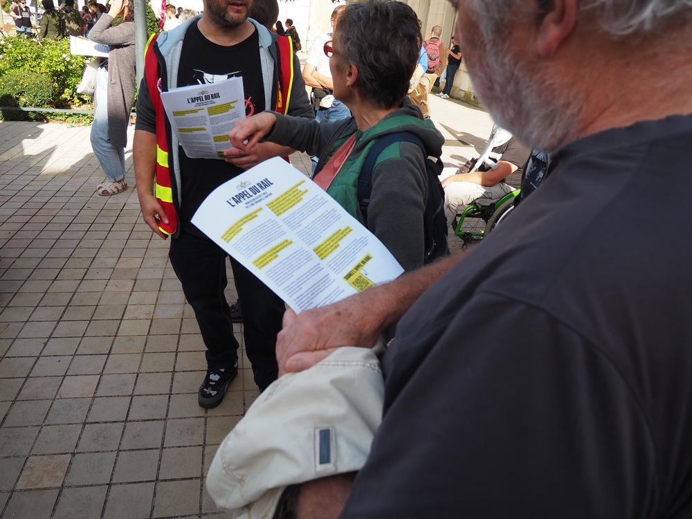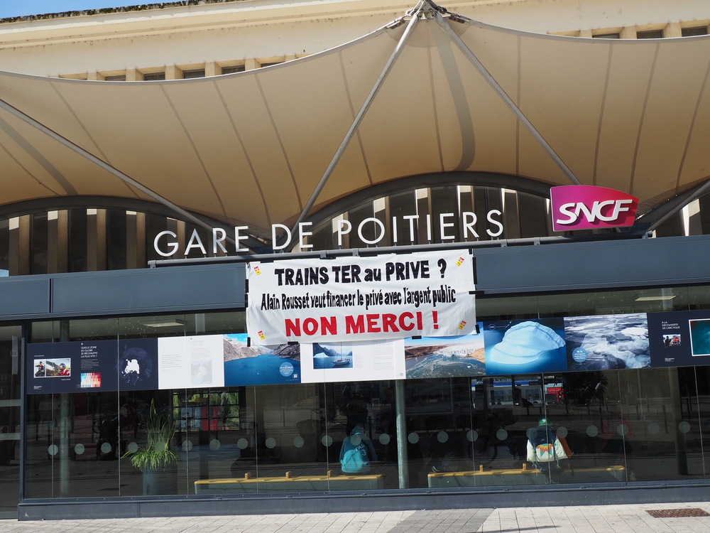 Du côté de la gare de Poitiers, les cheminots se rappelaient au bon souvenir d’Alain Rousset, président de la région Nouvelle Aquitaine, qui veut soumettre les TER à la concurrence…