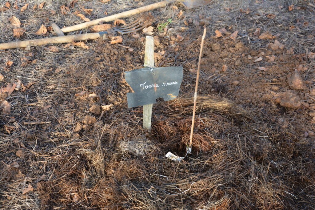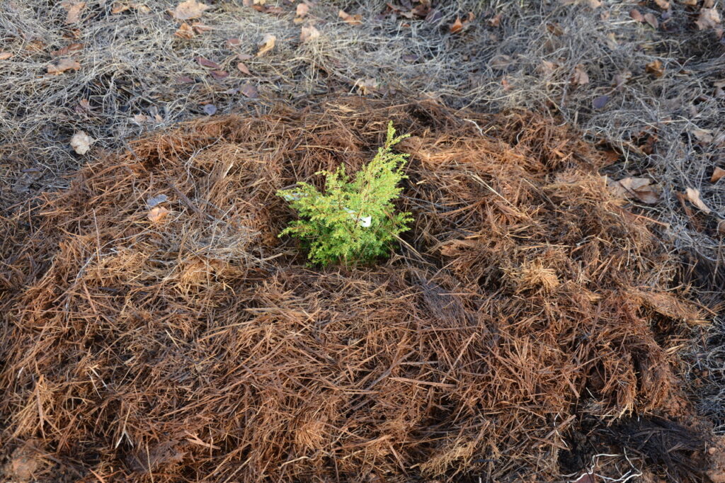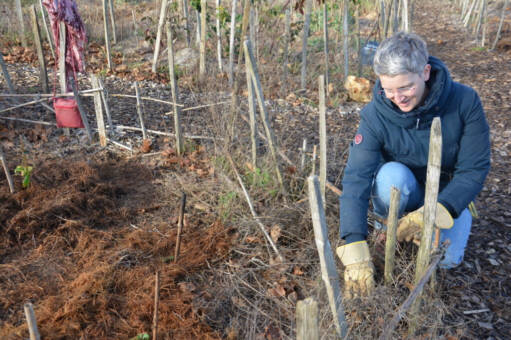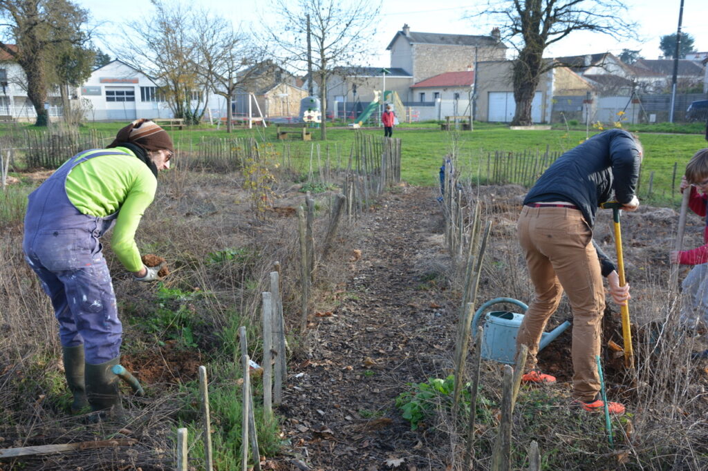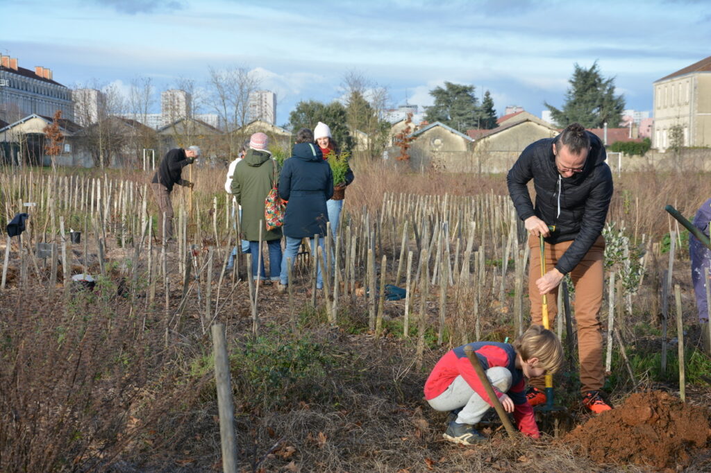 Dimanche 14 décembre, nouvel après-midi de plantation et de paillage au parc des Dunes. (comme tout le monde l’appelle maintenant) Un lieu que de nombreux riverains, et au delà, se sont appropriés, un lieu vivant où pique-niquer, jouer et flâner est devenu habituel. Un constat : ça pousse bien et l’année pluvieuse que nous connaissons y est pour quelque chose. Au regard de la constitution du sous-sol très karstique avec peu de terre pour permettre aux arbres de s’enraciner profondément, c’est une chance. Cette pluie bénéfique pour les jeunes plantations aura limité la mortalité qui dans la 1ère année est souvent importante. Le travail fourni par les bénévoles du Collectif des Dunes y est aussi pour quelque chose ! Ce dimanche, de jeunes plants d’arbres et des plantes vivaces ont été mis en terre par une quinzaine de personnes qui se sont relayées jusqu’à 16 h, plantation et paillage suivi d’un goûter sur place. Et comme le soleil brillait largement, ce fut d’autant plus apprécié.