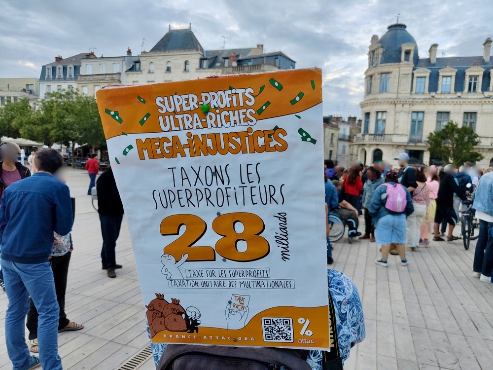 Peu de slogan, des verres en carton, des canettes, des chips, quelques pancartes, pas de drapeaux et beaucoup de jeunes. Une bonne moitié des présent.es.