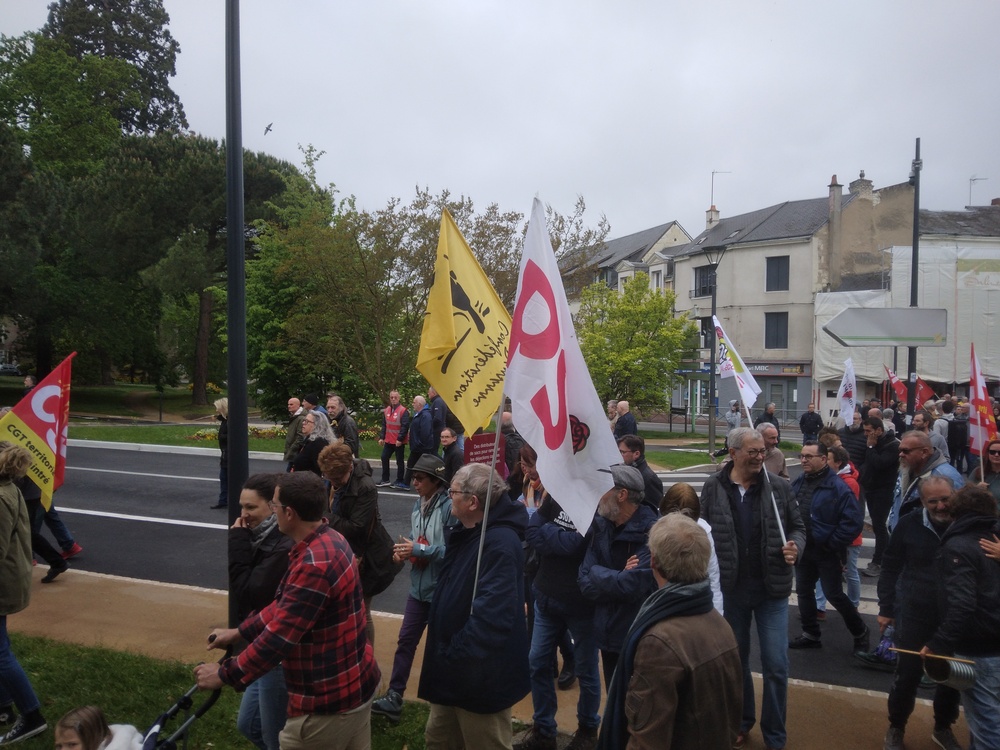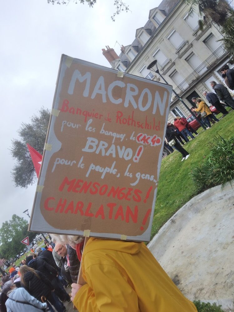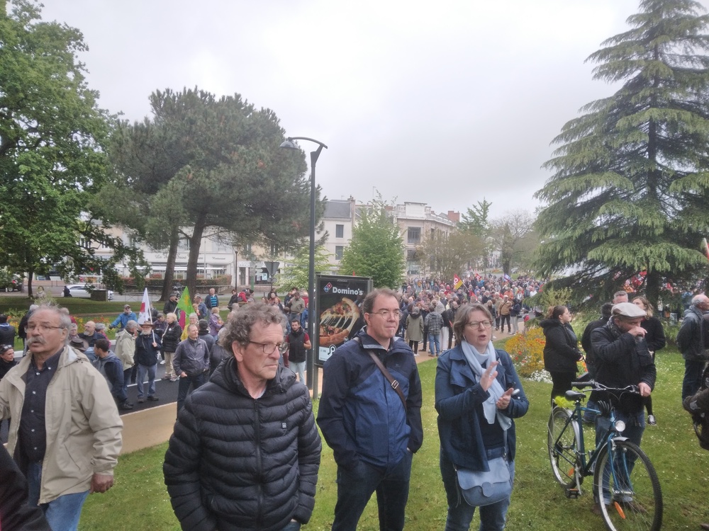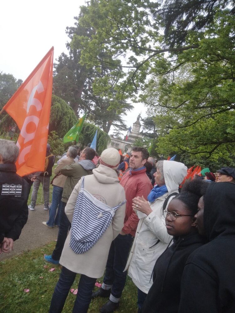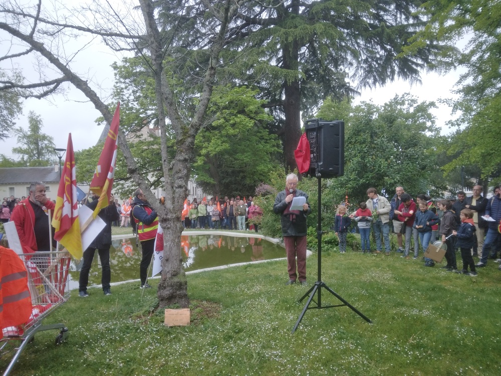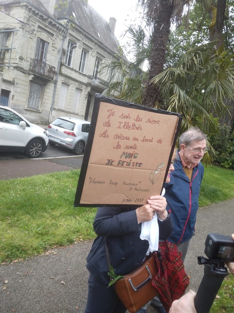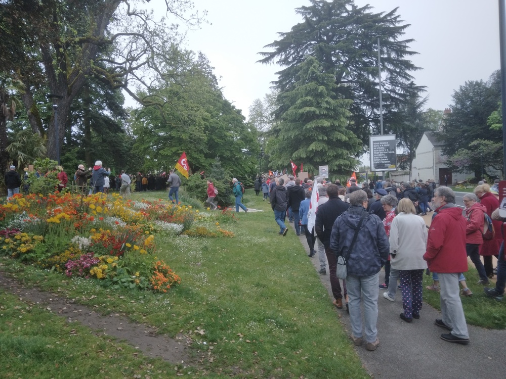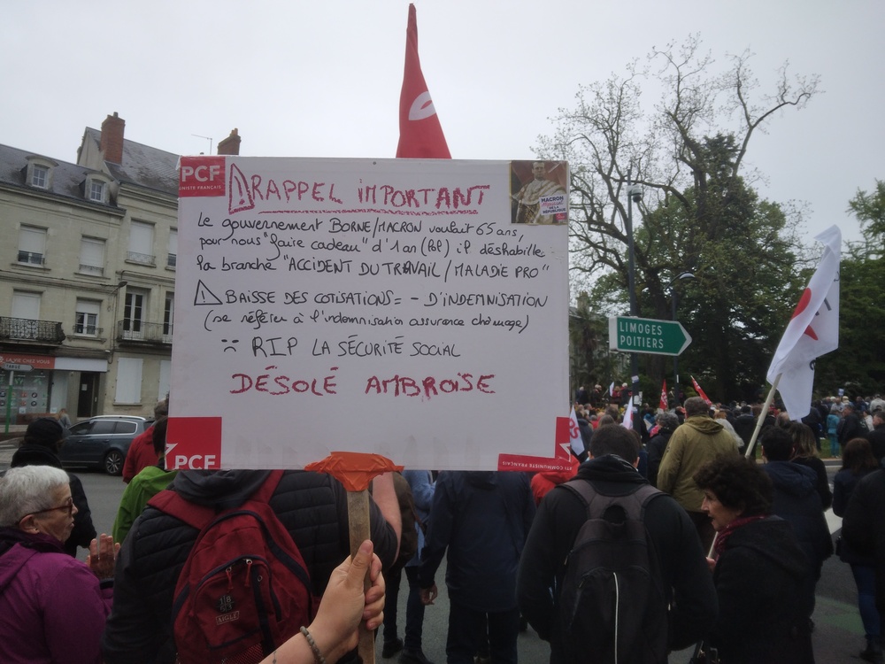 Le rendez-vous était fixé à 10 heures au kiosque à musique. Nous avons longé le boulevard Blossac jusqu’au Jardin Public, où ont lieu tous les premier mai syndicaux. Une première prise de parole a eu lieu. Nous sommes ensuite partis en manifestation jusqu’à la place Dupleix en passant par les quais au bord de la Vienne. Place Dupleix, la vitrine de la permanence du député MODEM Nicolas Turquois a été décorée de quelques autocollants. Nous avons ensuite rejoint le kiosque à musique pour une nouvelle prise de parole pendant laquelle la menace de privatisation du CCAS a été évoquée.