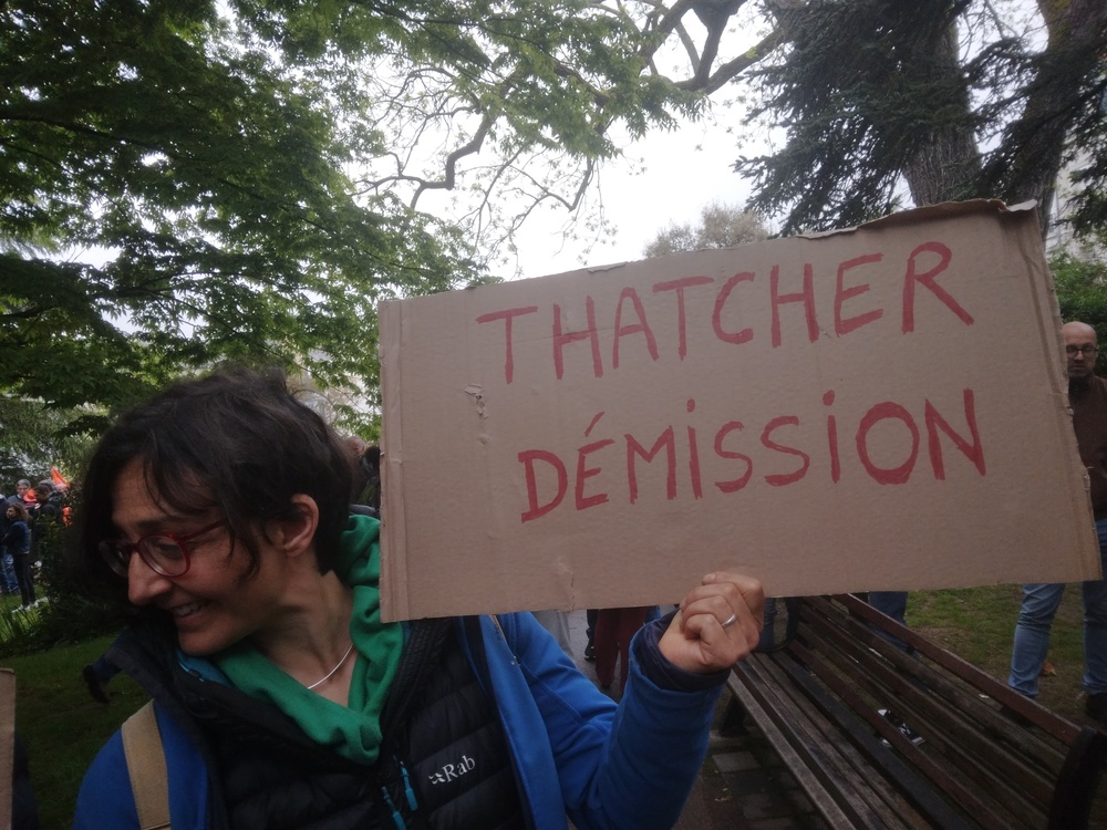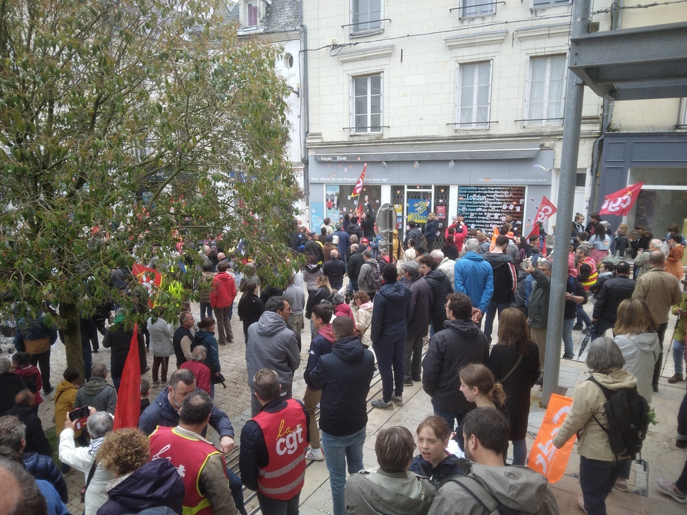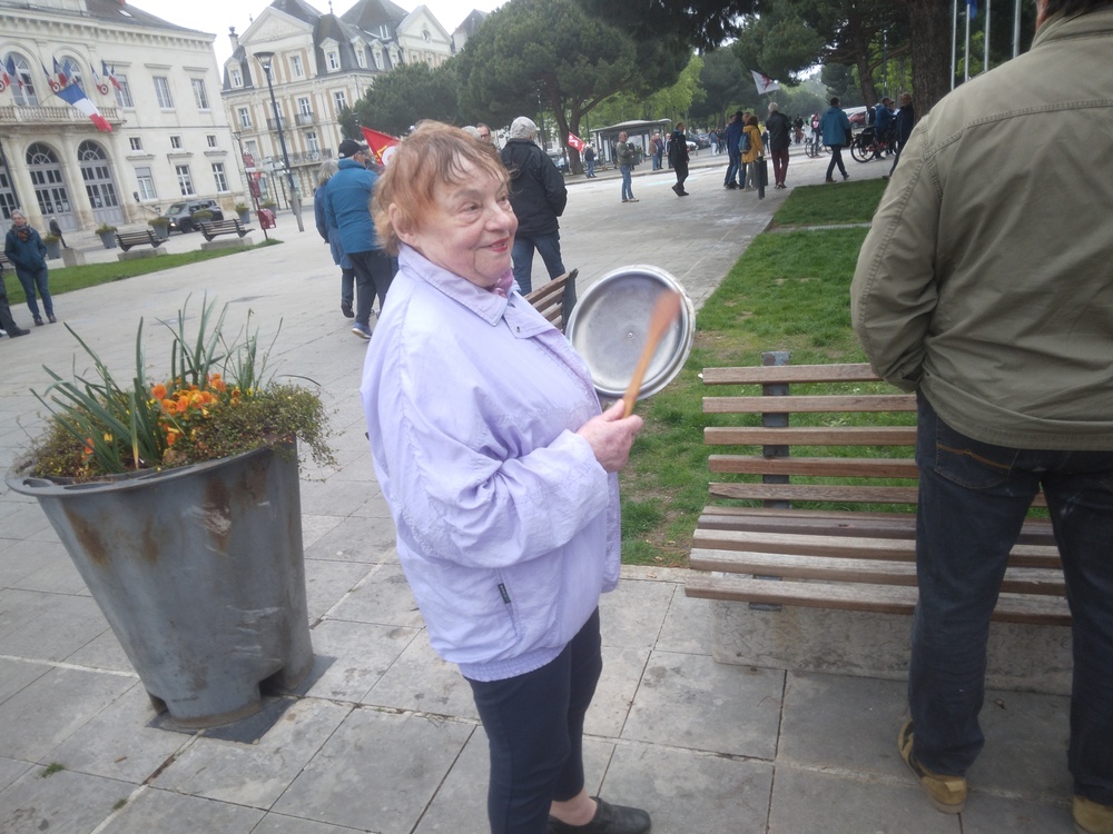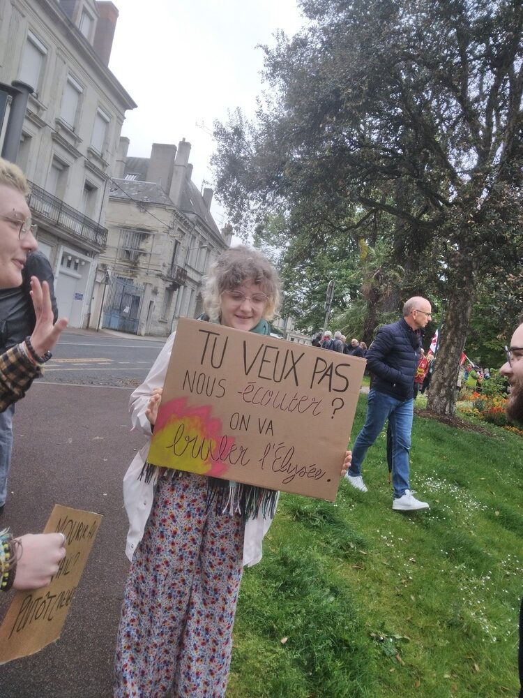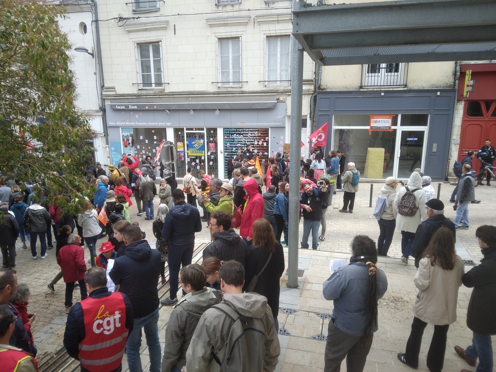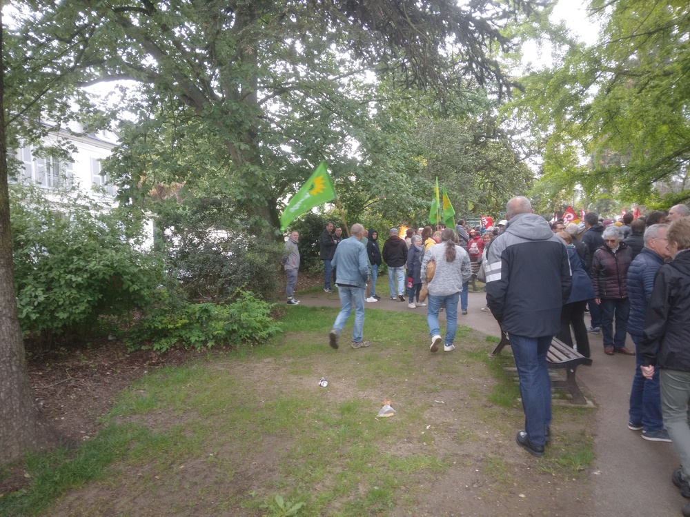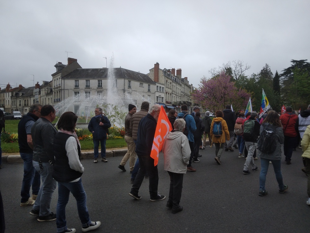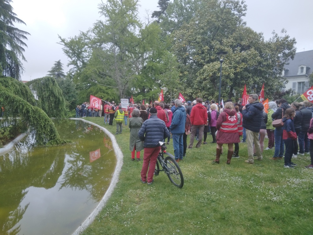Le rendez-vous était fixé à 10 heures au kiosque à musique. Nous avons longé le boulevard Blossac jusqu’au Jardin Public, où ont lieu tous les premier mai syndicaux. Une première prise de parole a eu lieu. Nous sommes ensuite partis en manifestation jusqu’à la place Dupleix en passant par les quais au bord de la Vienne. Place Dupleix, la vitrine de la permanence du député MODEM Nicolas Turquois a été décorée de quelques autocollants. Nous avons ensuite rejoint le kiosque à musique pour une nouvelle prise de parole pendant laquelle la menace de privatisation du CCAS a été évoquée.