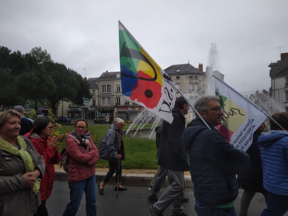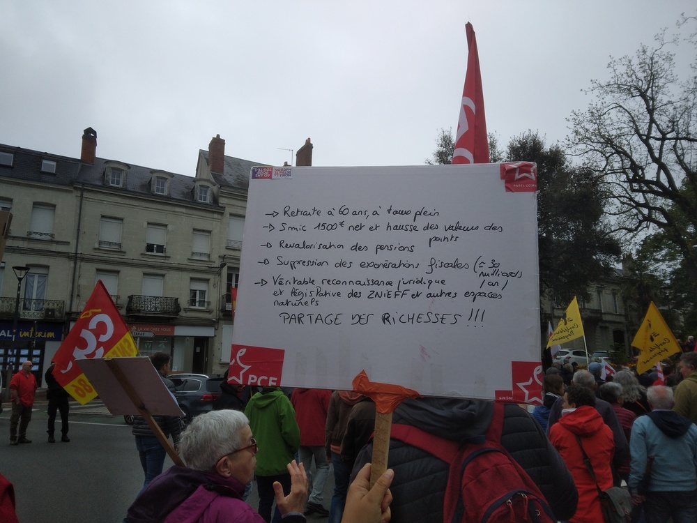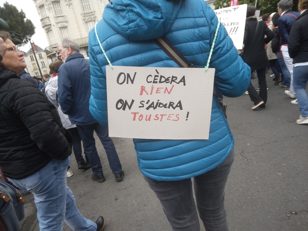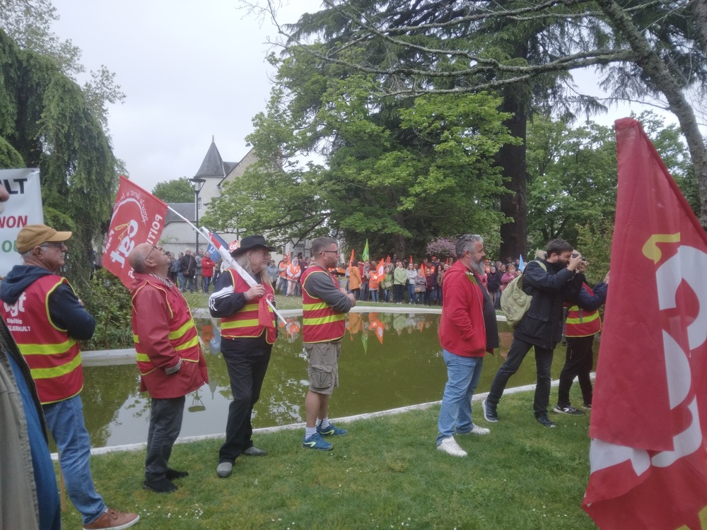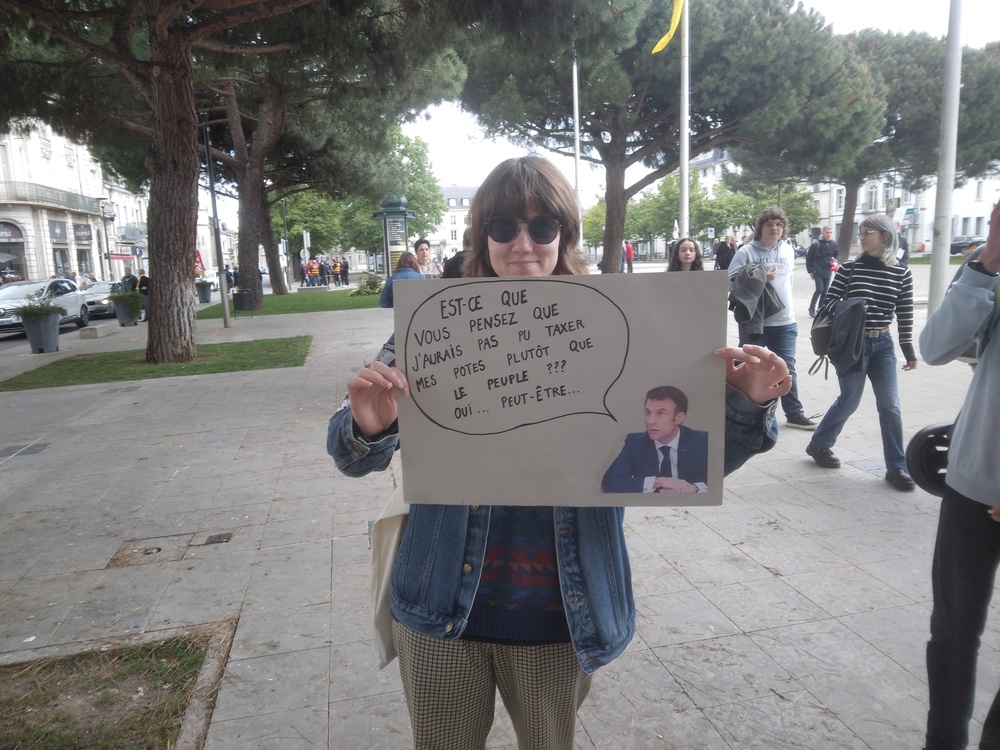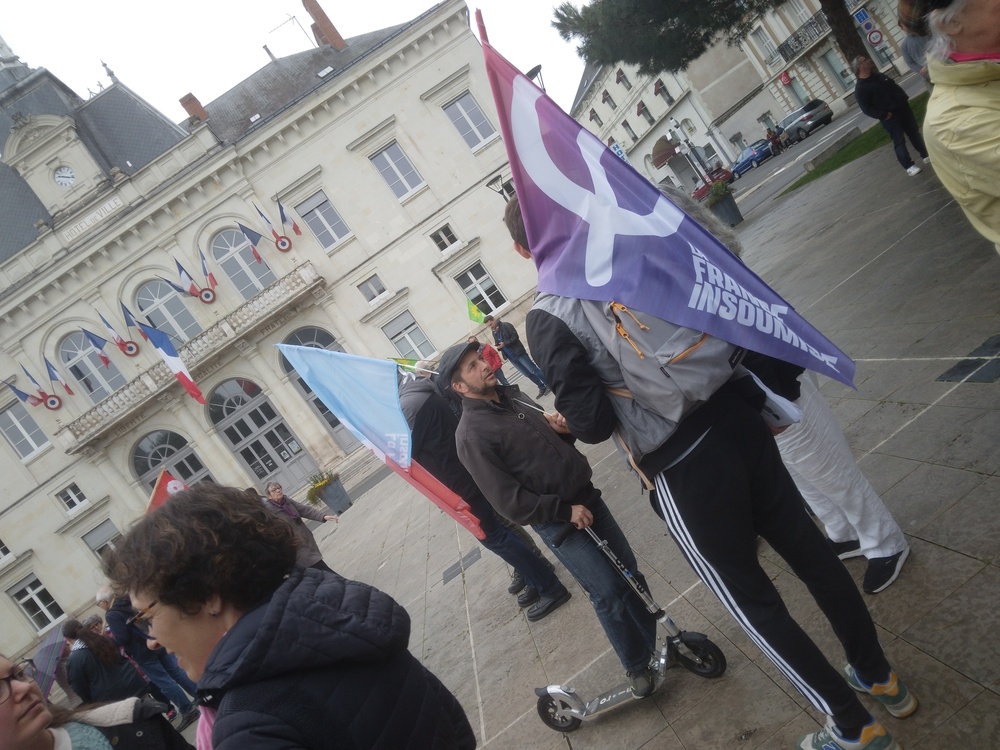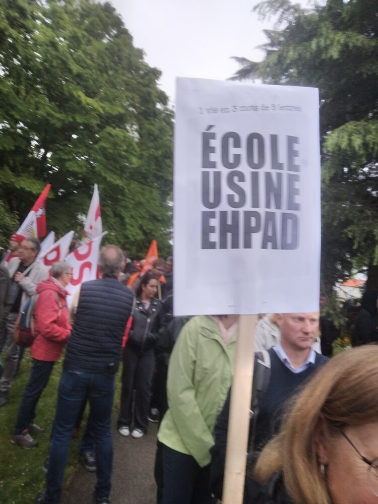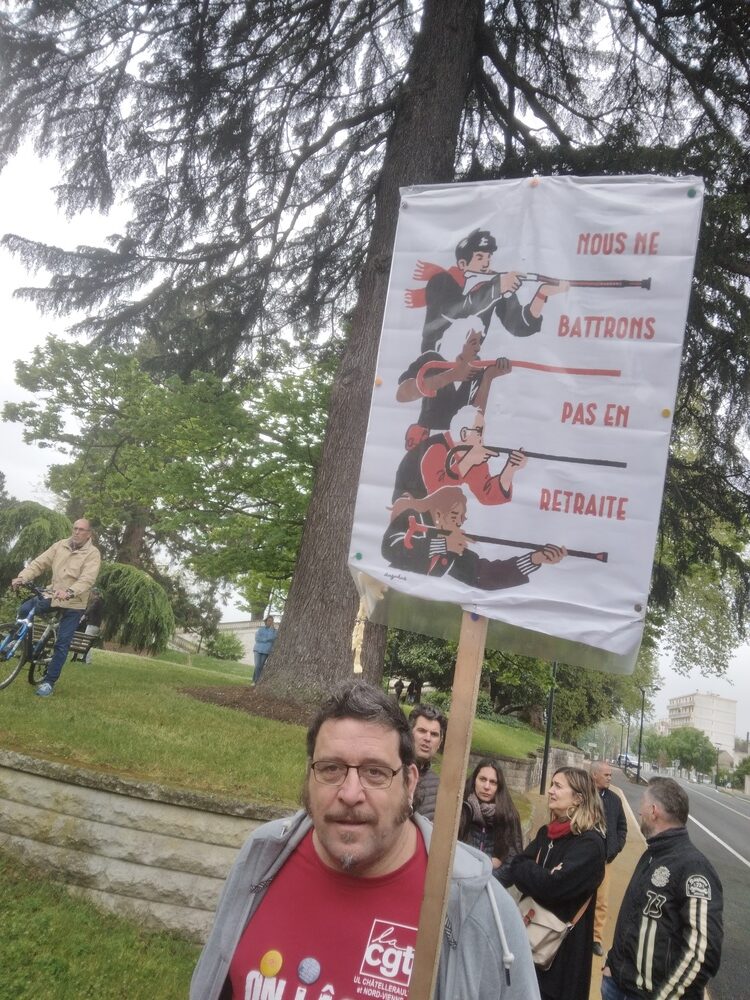 Le rendez-vous était fixé à 10 heures au kiosque à musique. Nous avons longé le boulevard Blossac jusqu’au Jardin Public, où ont lieu tous les premier mai syndicaux. Une première prise de parole a eu lieu. Nous sommes ensuite partis en manifestation jusqu’à la place Dupleix en passant par les quais au bord de la Vienne. Place Dupleix, la vitrine de la permanence du député MODEM Nicolas Turquois a été décorée de quelques autocollants. Nous avons ensuite rejoint le kiosque à musique pour une nouvelle prise de parole pendant laquelle la menace de privatisation du CCAS a été évoquée.