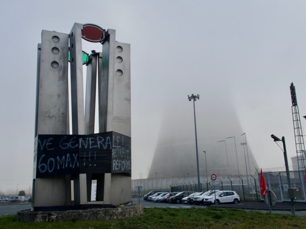Dès 6 h du matin, les feux de palettes réchauffaient les grévistes et tous les soutiens qui affluaient toute la journée. Café, gâteaux, sandwiches fournis solidairement par les commerçants de Civaux permettaient de tenir le pavé dans le brouillard de la seule cheminée de refroidissement en activité de la centrale nucléaire.