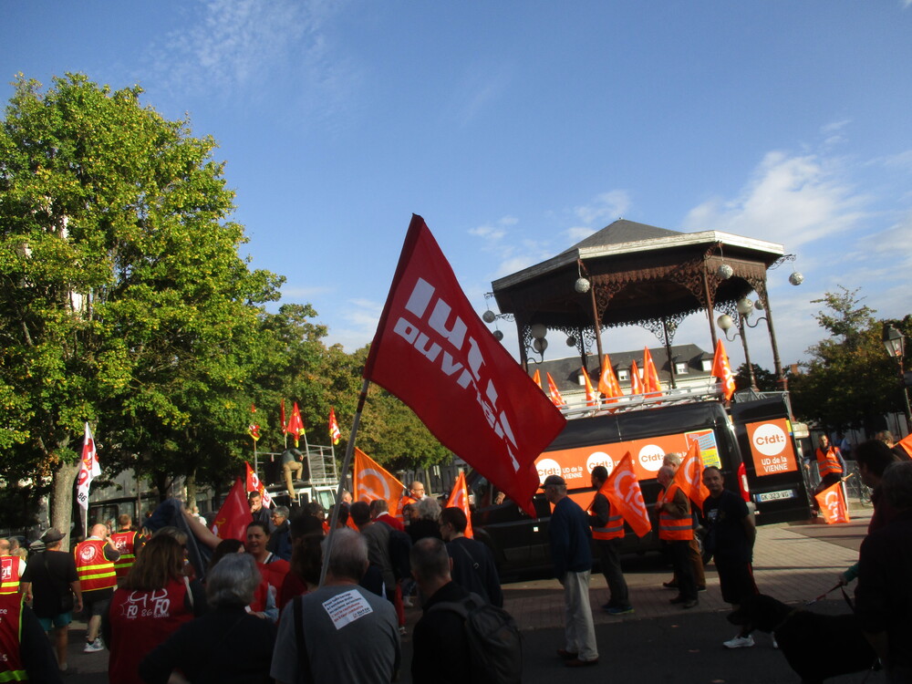 Le point de départ de cette manifestation appelée par l’ensemble des syndicats, dans le cadre d’une journée européenne de lutte, était fixé à dix heures au kiosque à musique.