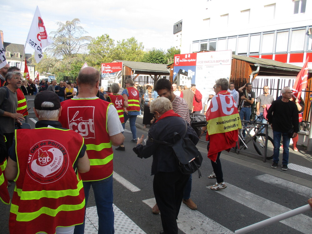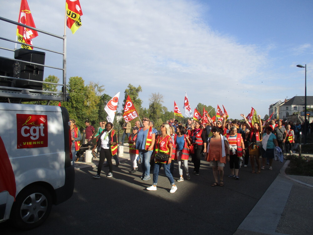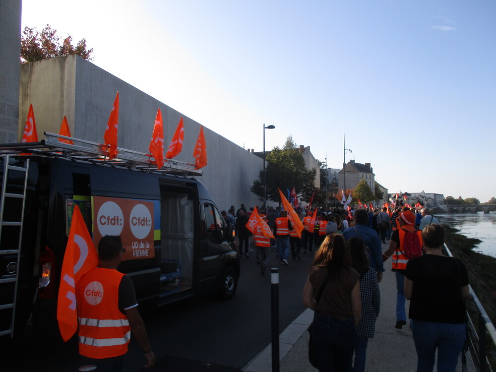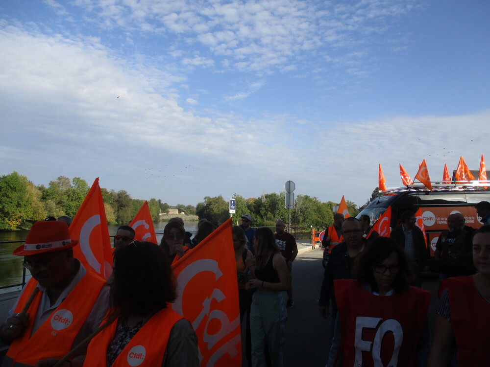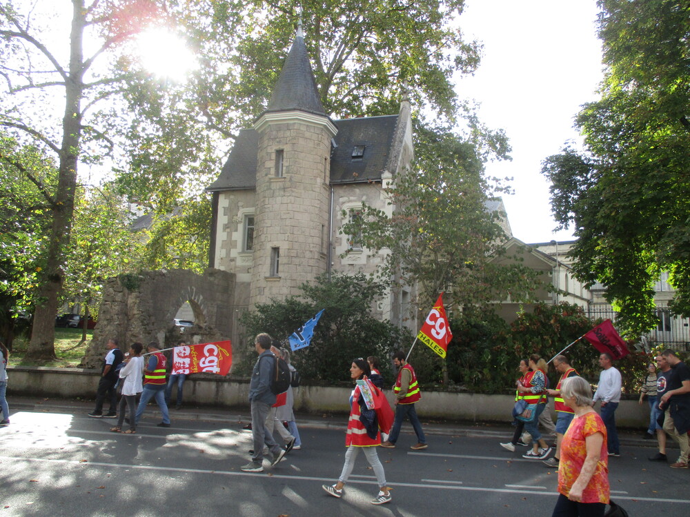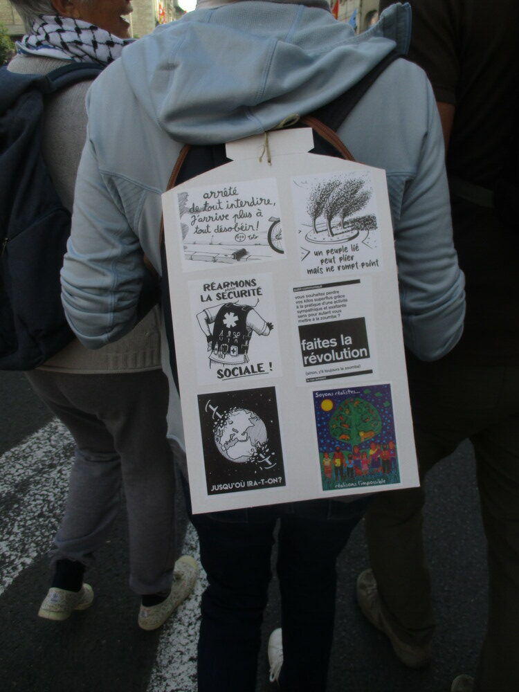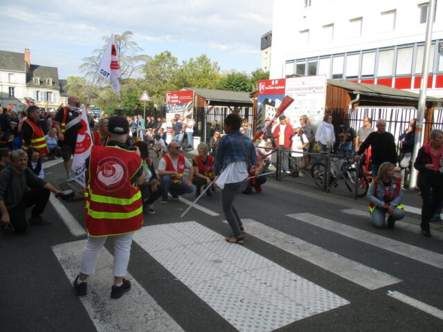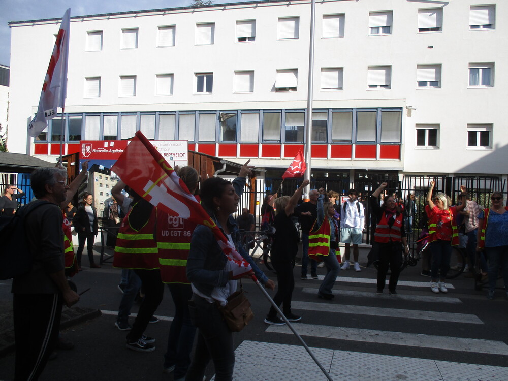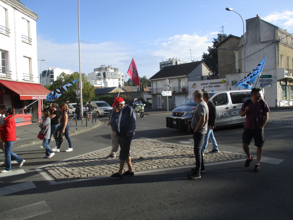 Après une courte prise de parole, nous nous sommes dirigés vers le cinéma le Loft puis nous avons rejoint les quais de la Vienne. Nous nous sommes arrêtés devant les grilles du lycée Berthelot où des manifestantes et des manifestants ont exécuté une chorégraphie. Nous avons ensuite repris notre marche jusqu’à l’hôtel de de ville, puis une prise de parole plus longue que la première a clôturé la manifestation.