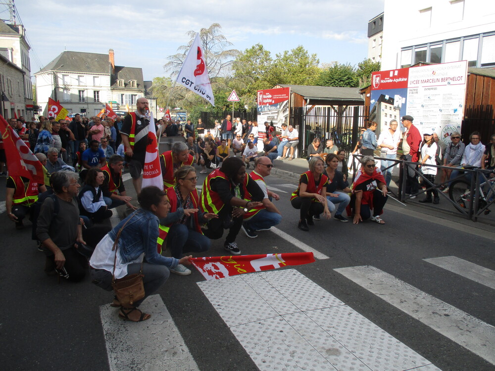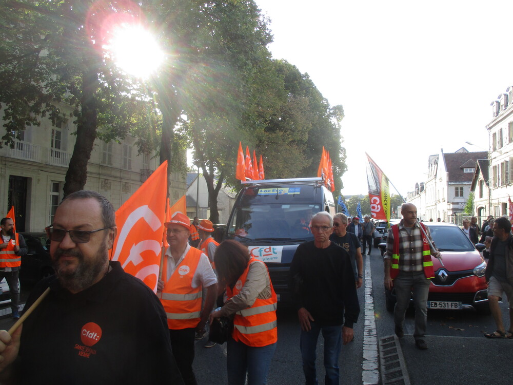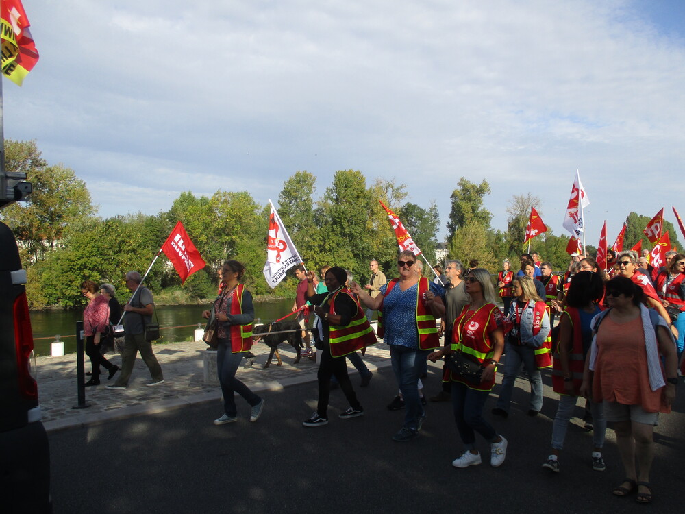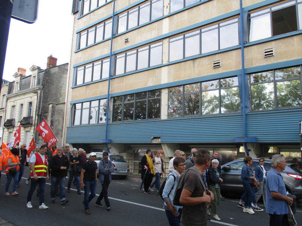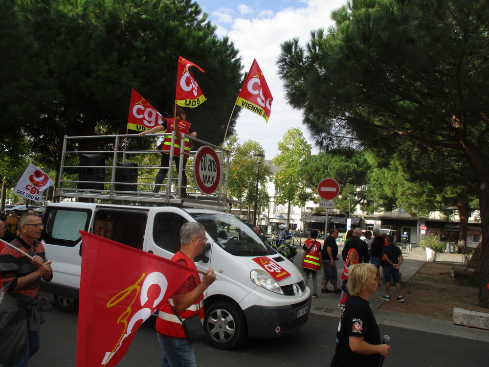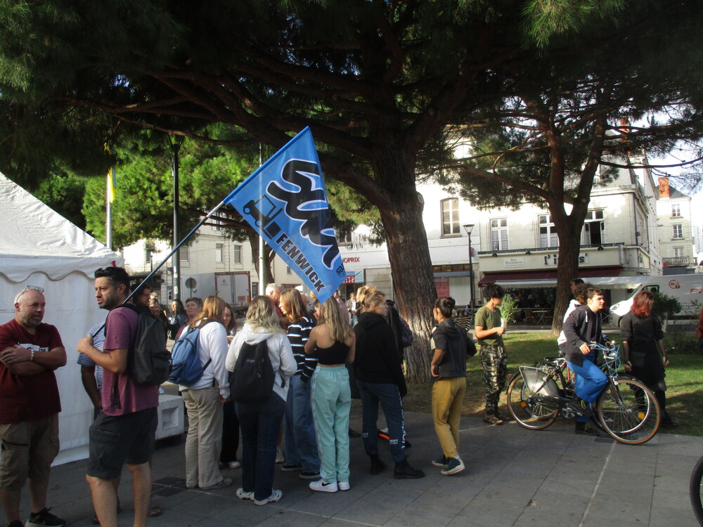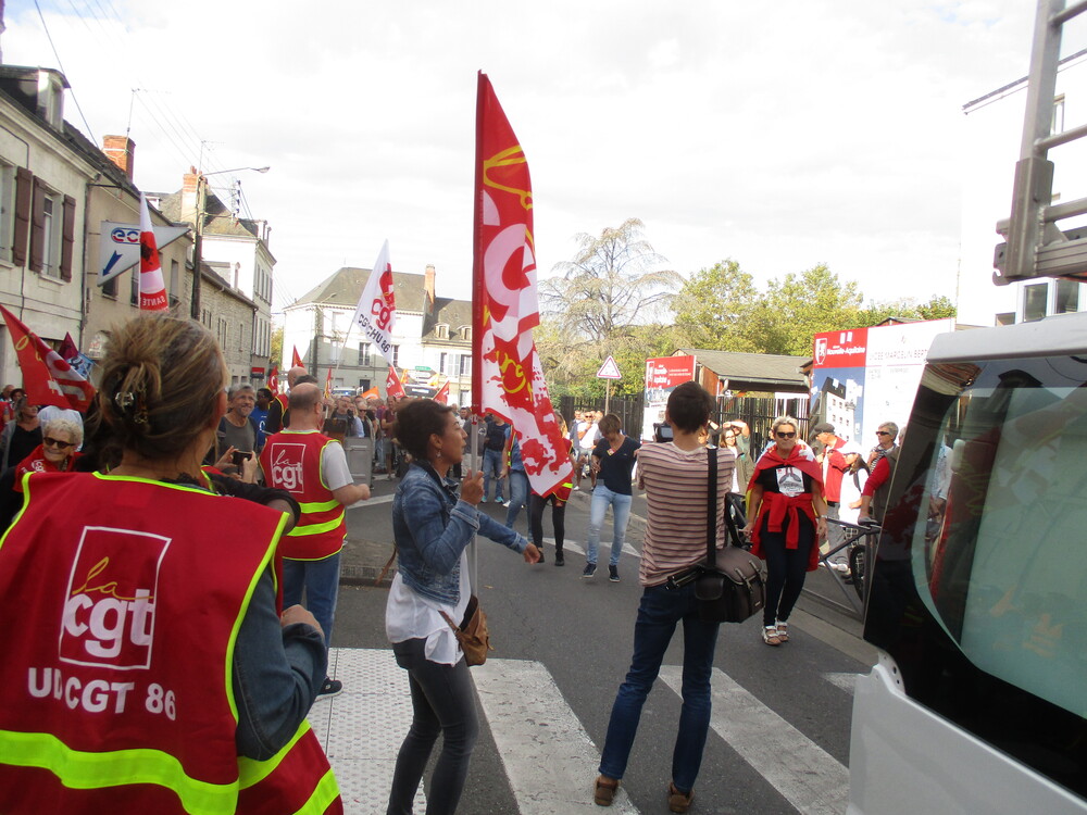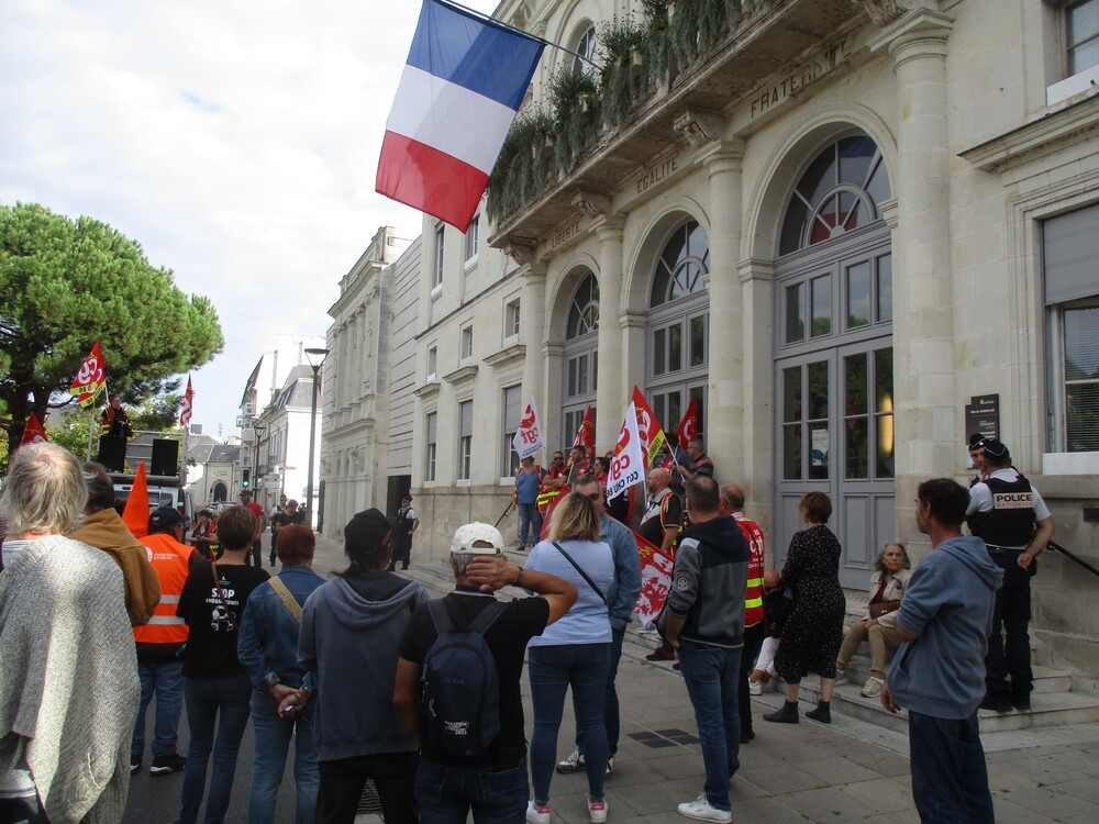 Après une courte prise de parole, nous nous sommes dirigés vers le cinéma le Loft puis nous avons rejoint les quais de la Vienne. Nous nous sommes arrêtés devant les grilles du lycée Berthelot où des manifestantes et des manifestants ont exécuté une chorégraphie. Nous avons ensuite repris notre marche jusqu’à l’hôtel de de ville, puis une prise de parole plus longue que la première a clôturé la manifestation.