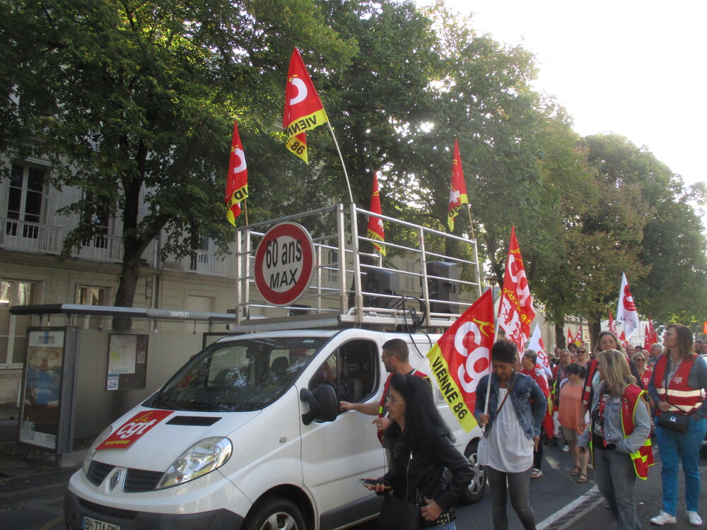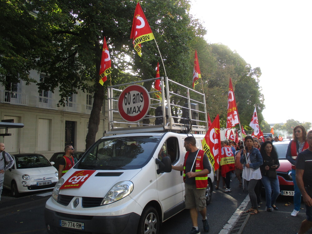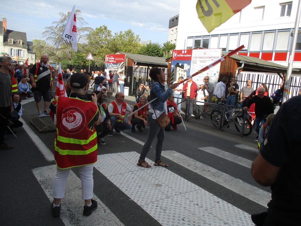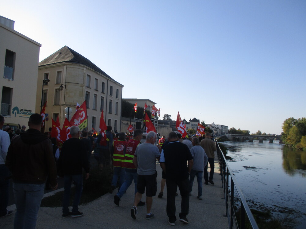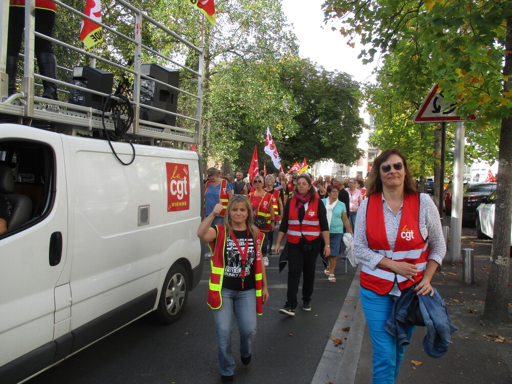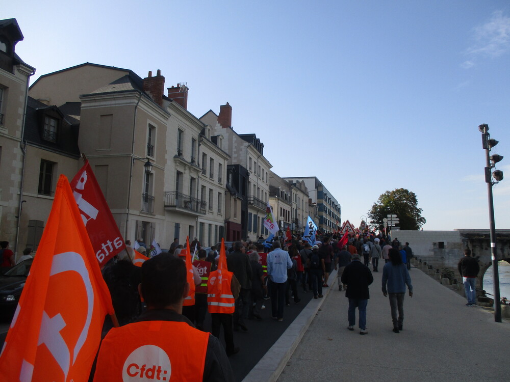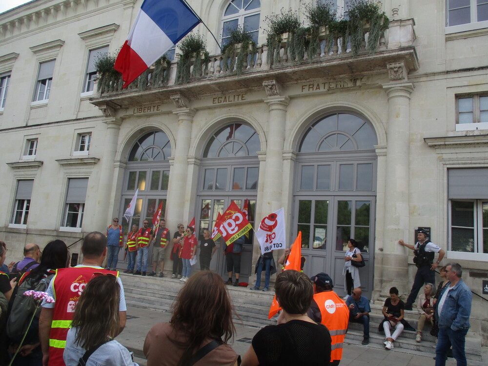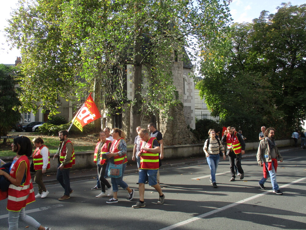 Après une courte prise de parole, nous nous sommes dirigés vers le cinéma le Loft puis nous avons rejoint les quais de la Vienne. Nous nous sommes arrêtés devant les grilles du lycée Berthelot où des manifestantes et des manifestants ont exécuté une chorégraphie. Nous avons ensuite repris notre marche jusqu’à l’hôtel de de ville, puis une prise de parole plus longue que la première a clôturé la manifestation.